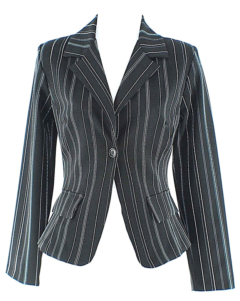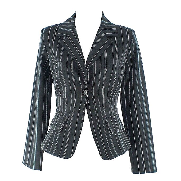 Modern Essentials Sz 5 Black Aqua Multi Stripe Polyester Spandex Jacket