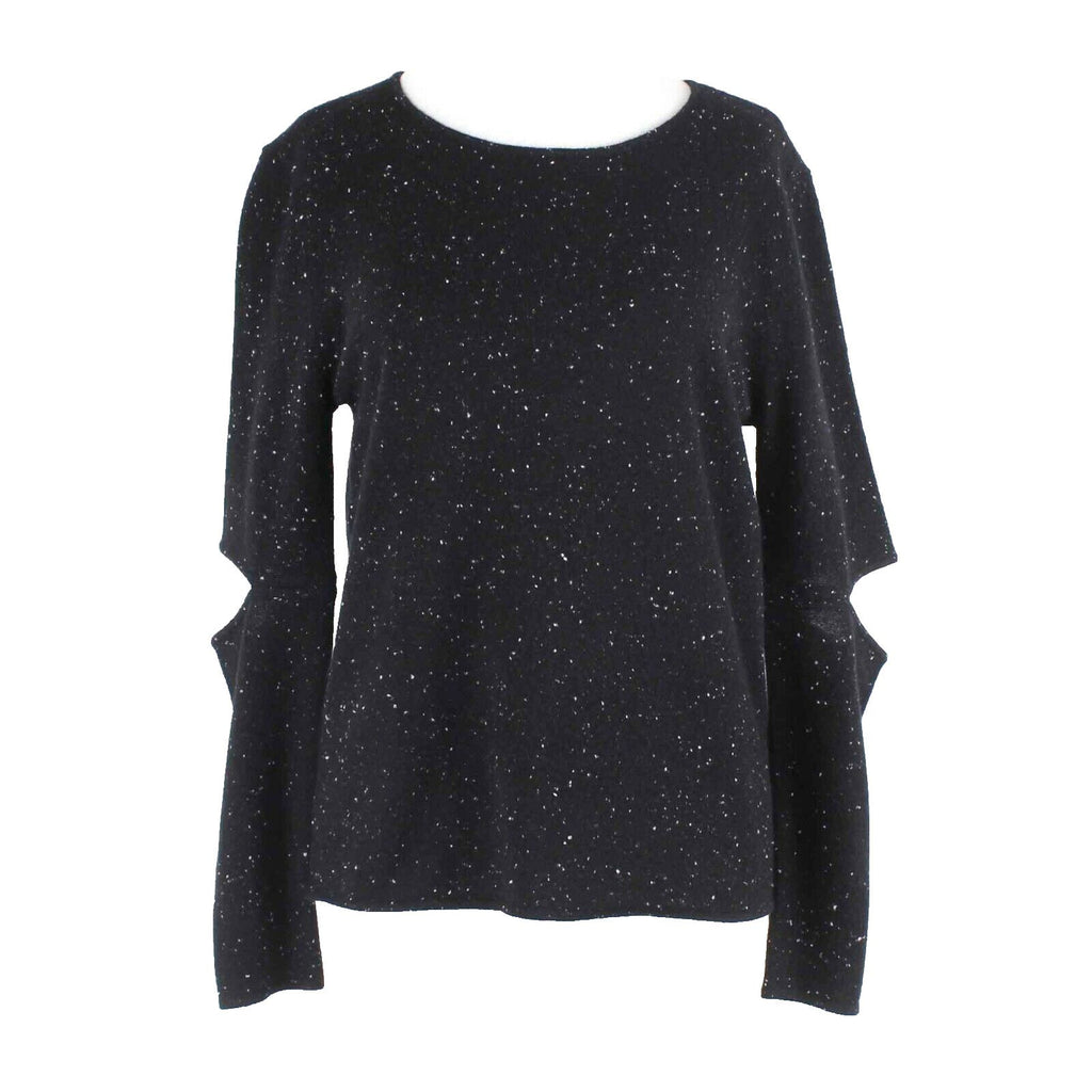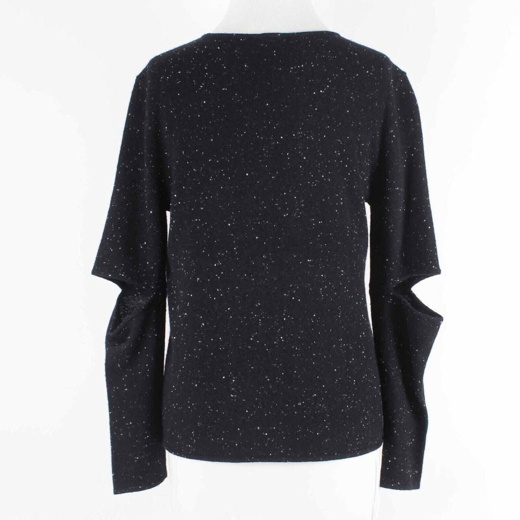 Monrow Sz S Black White Pullover Cold Elbow Knit 100% Cashmere Sweater