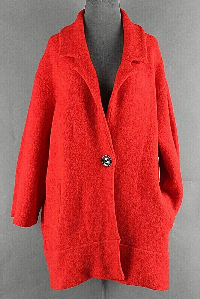 Moth NEW $198 Sz M Red One Button Stretchy Nylon Acrylic Wool Jacket Coat