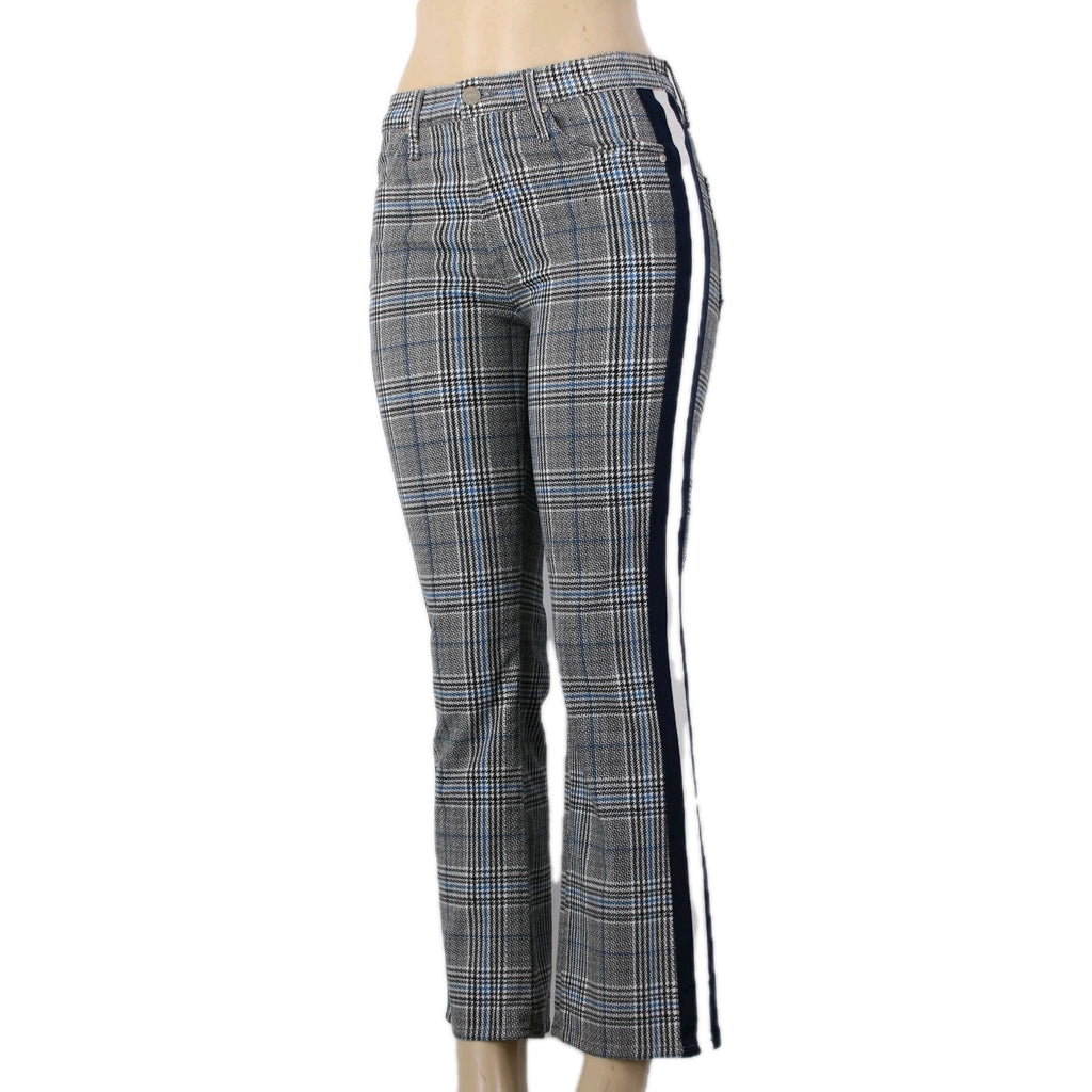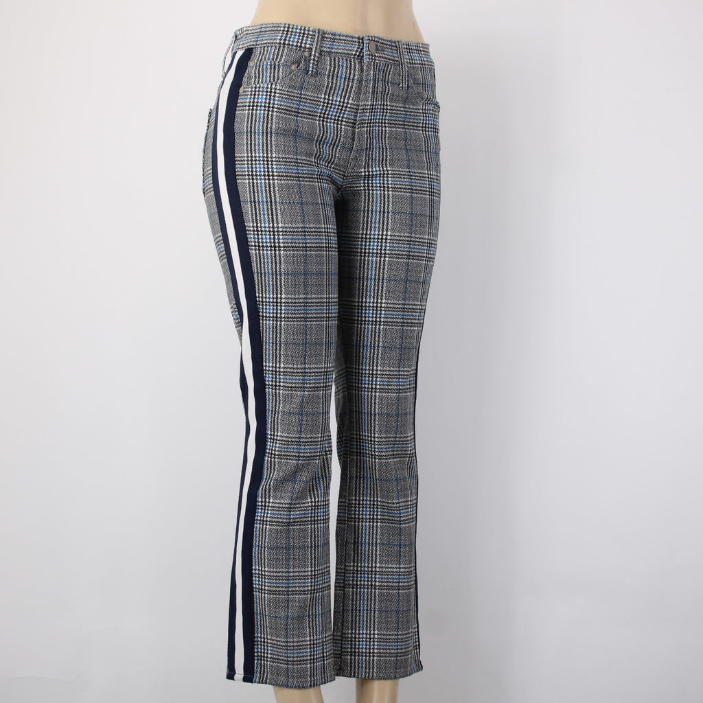 Mother Pant Sz 28 x 27 Black Blue White Striped Side Plaid Straight Cotton Pant