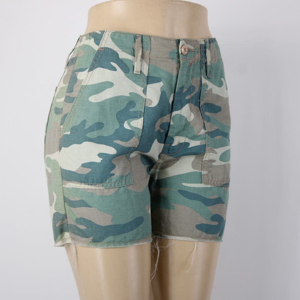 Mother Shorts NEW $168 Sz 27 x 4 Blue Green Camo The Shaker Crop Cotton Shorts