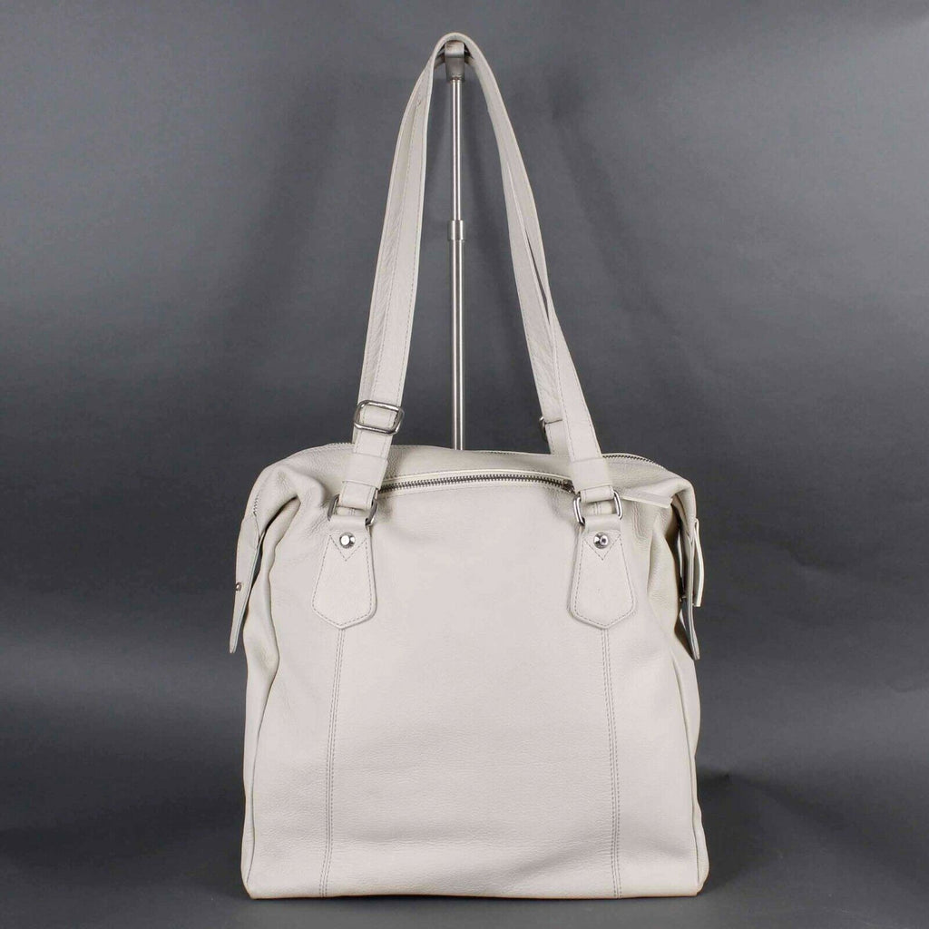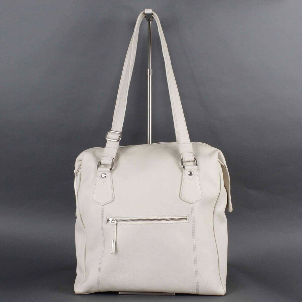 Nicoli 15 x 13 Bone Leather Zip Pockets In n Out Adjustable Straps Purse