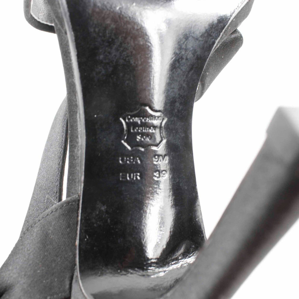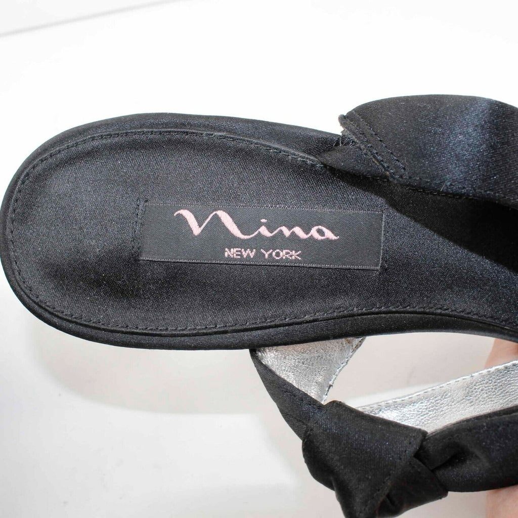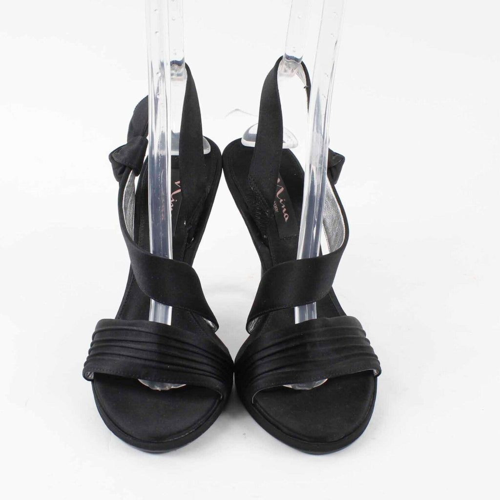 Nina Sz 9M Black Satin 4.5" High Heel Open Toe Slingback Heels