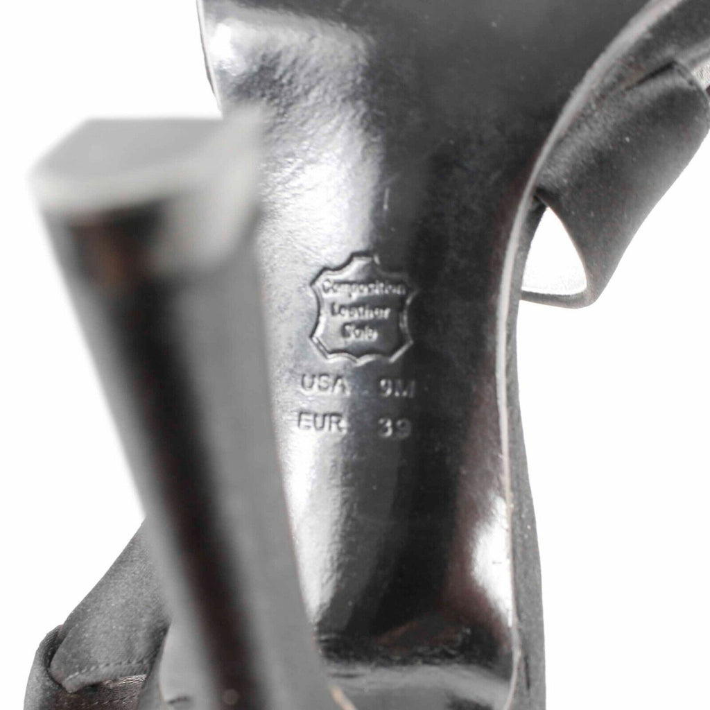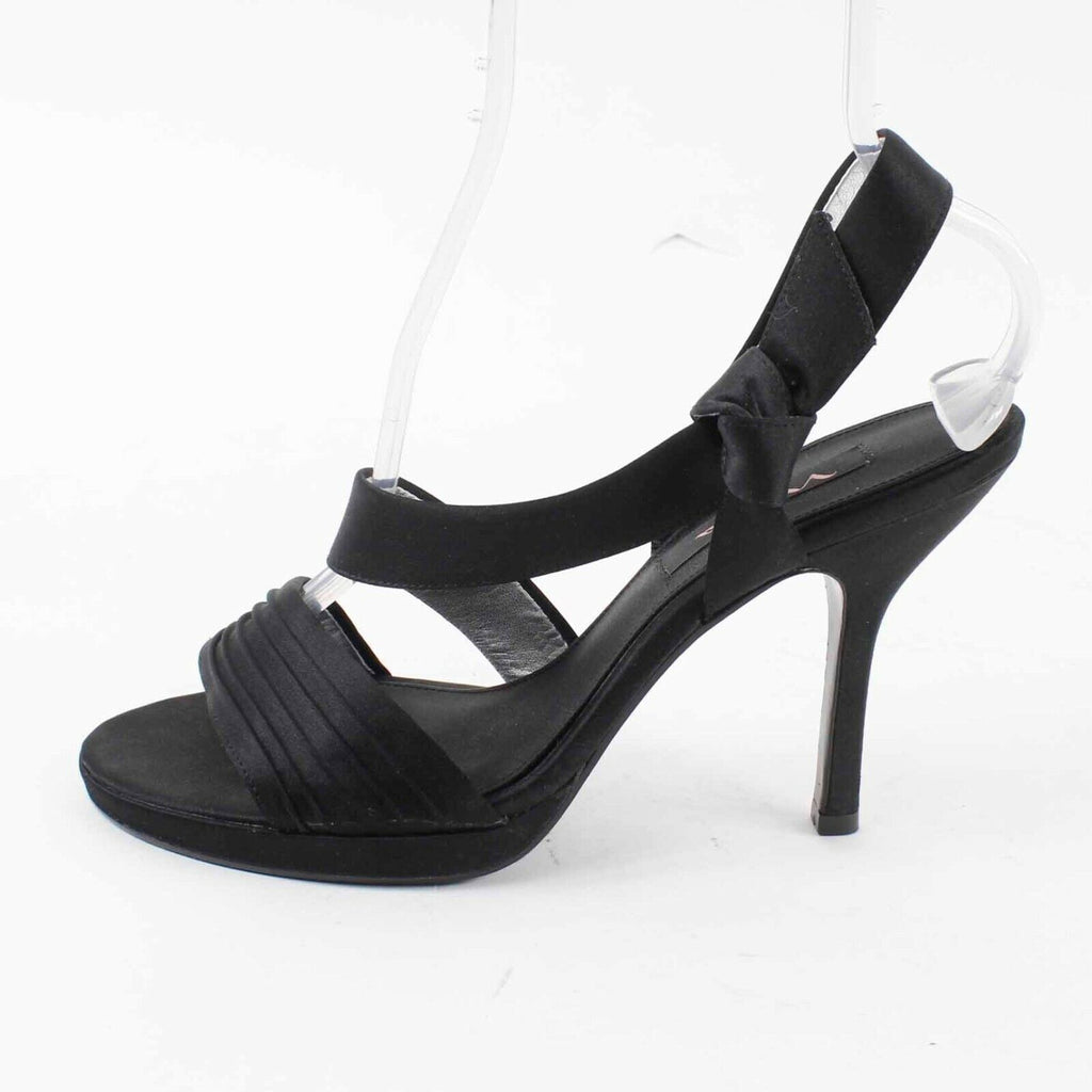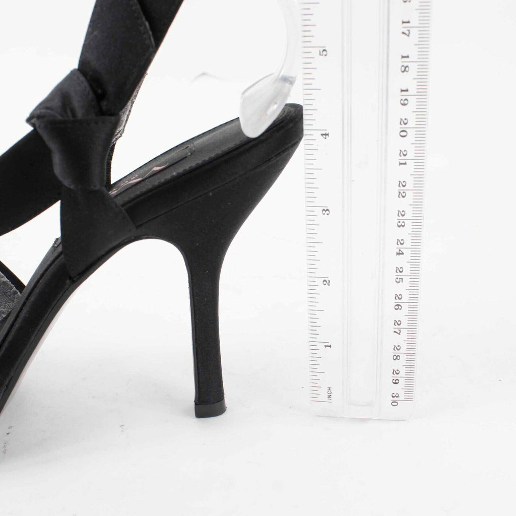 Nina Sz 9M Black Satin 4.5" High Heel Open Toe Slingback Heels