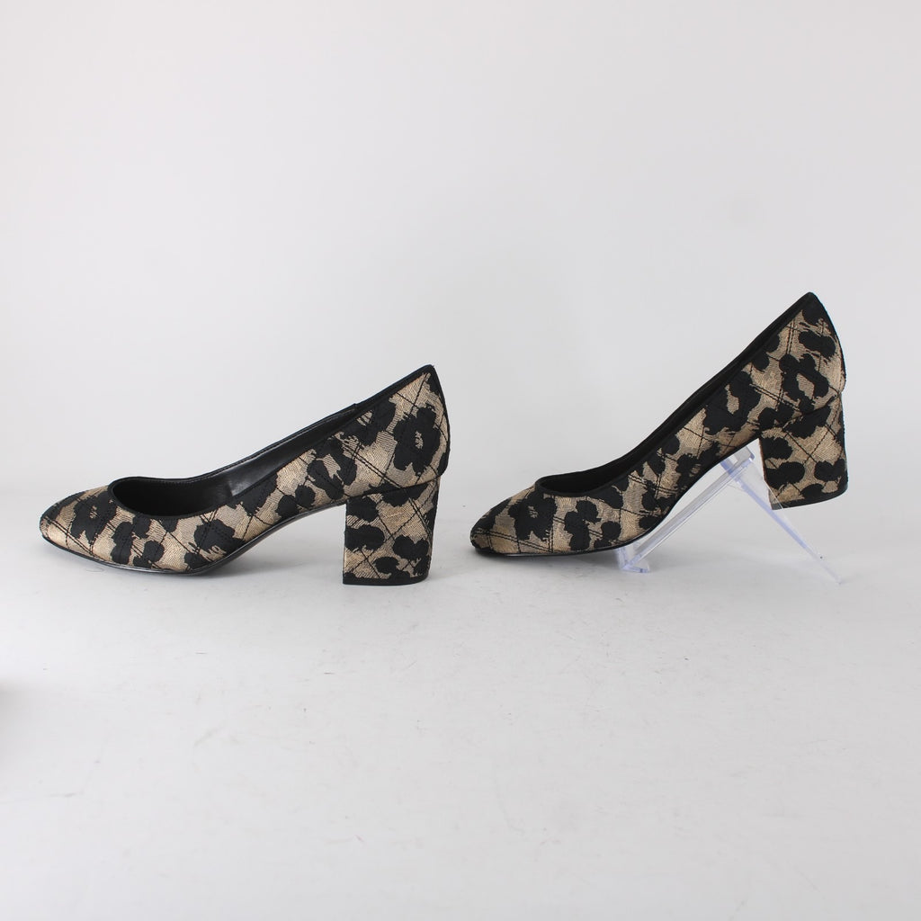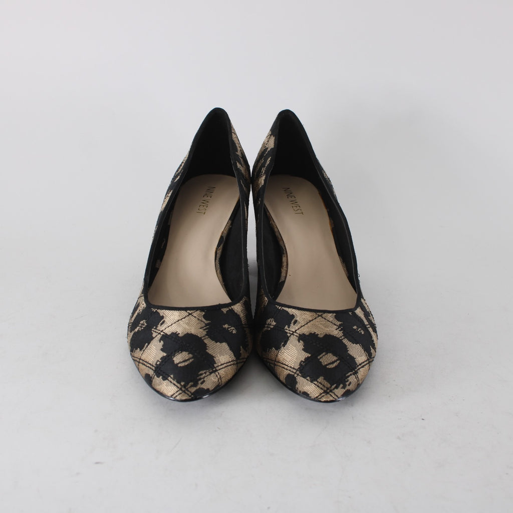 Nine West Heels Sz 10 M Brown Black Animal Print Slip On Man Made Materials Heel