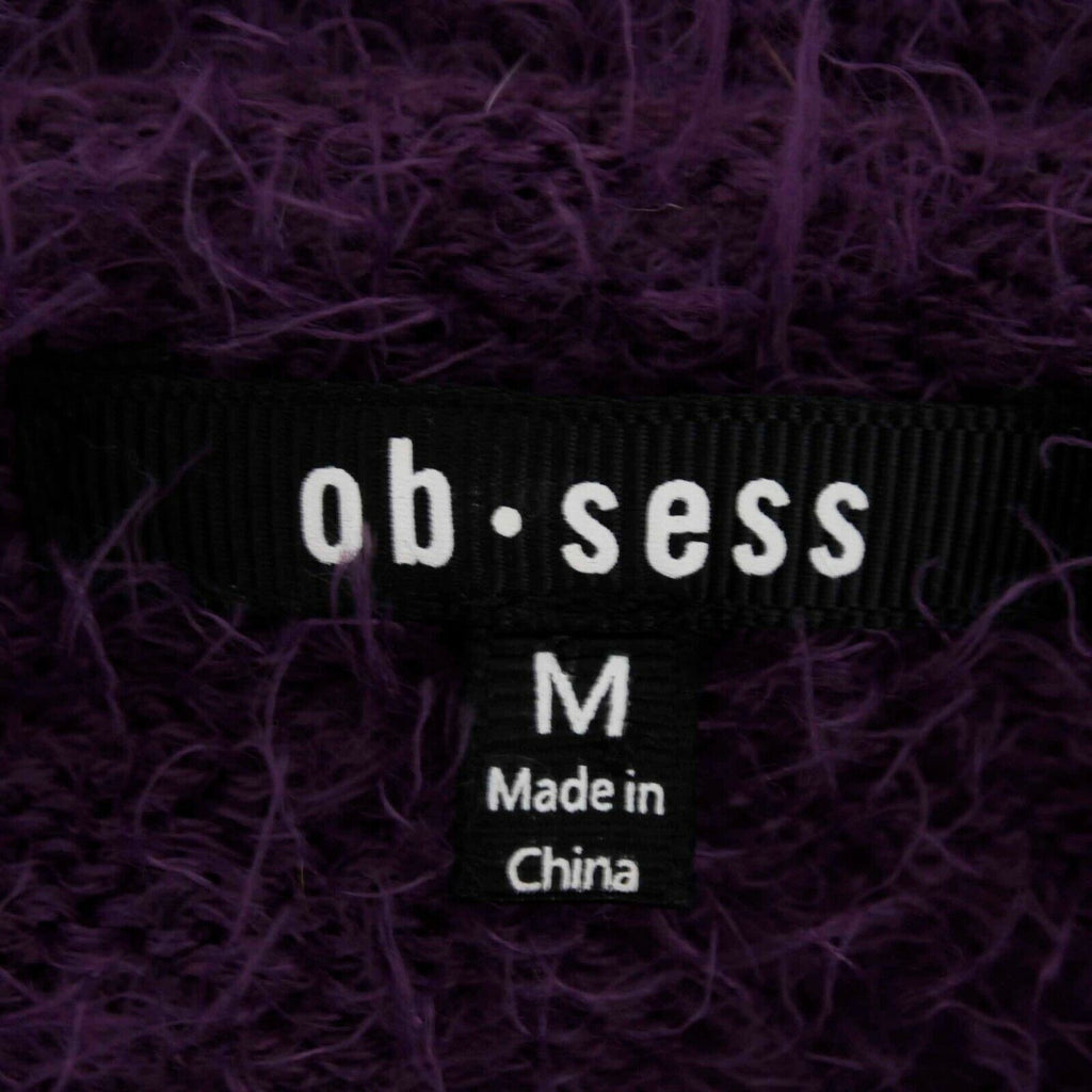 Obsess Sz M Purple Ruffle Mid Sleeve Pullover Polyester Acrylic Sweater
