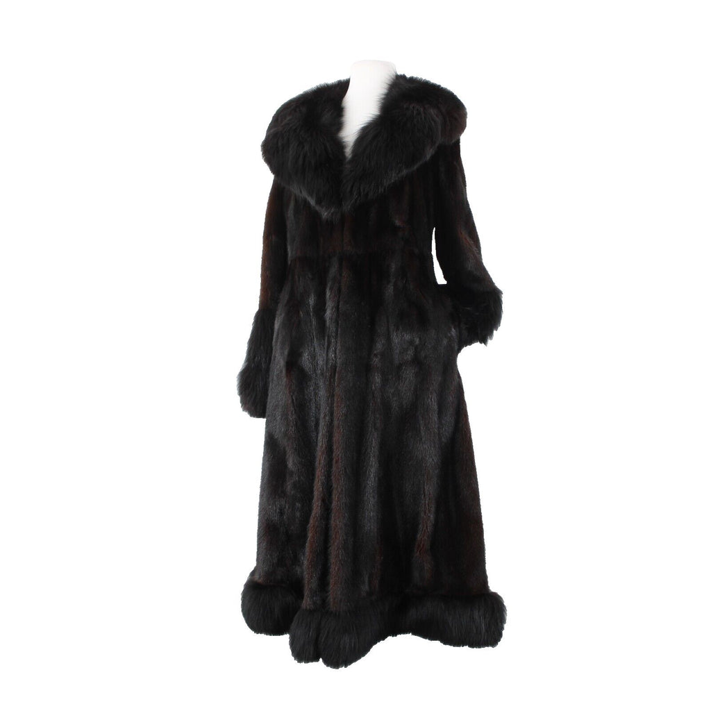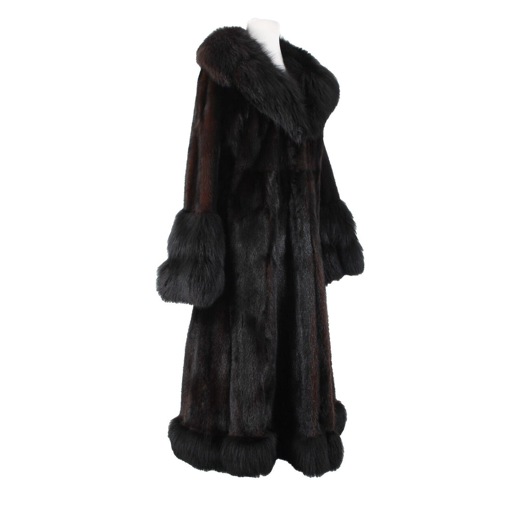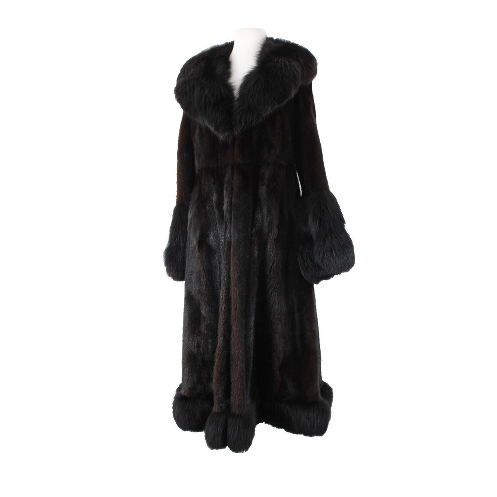 Oleg Cassini Black Mink w Fox Shawl Collar Sleeve Hem Trimmed Luxe Fur Coat