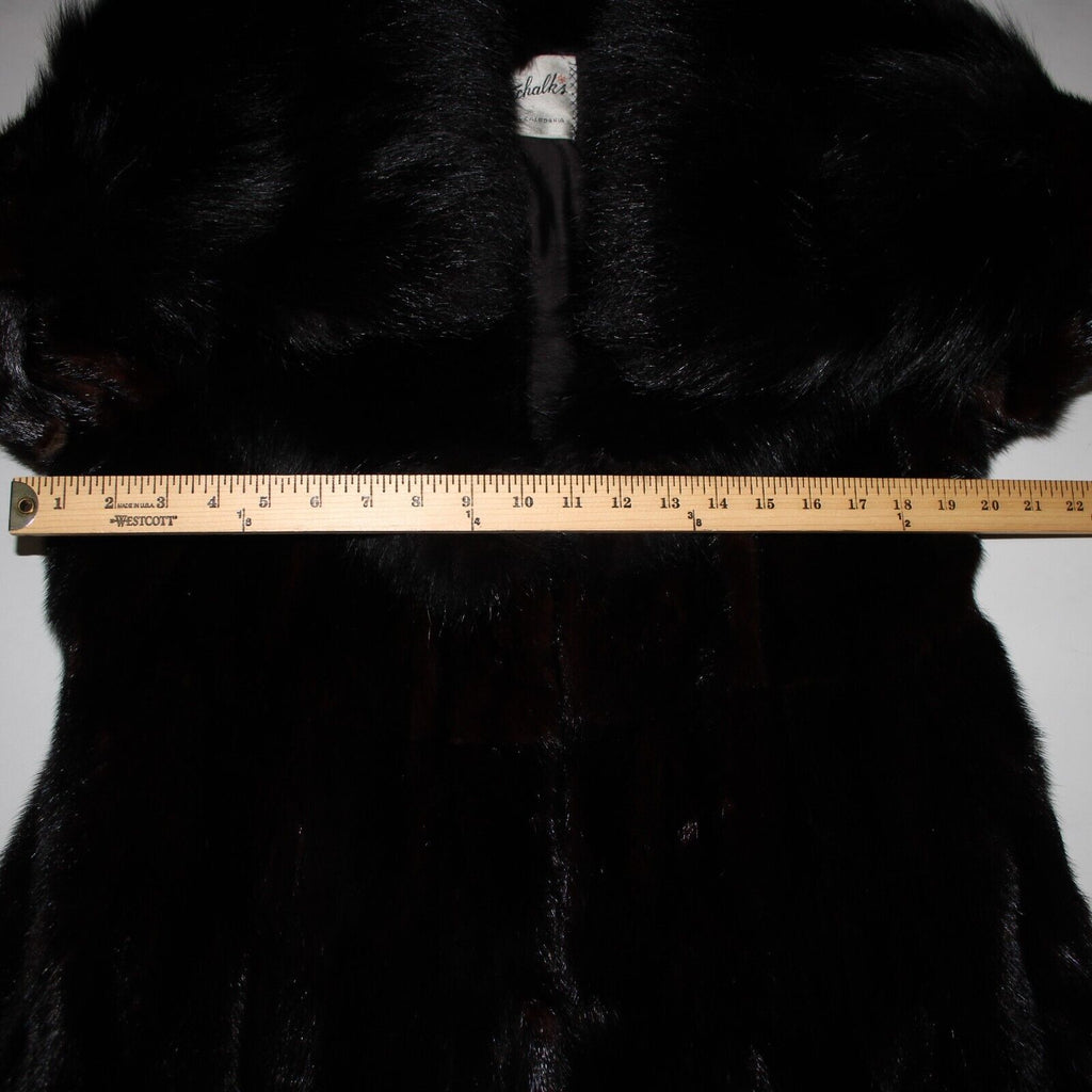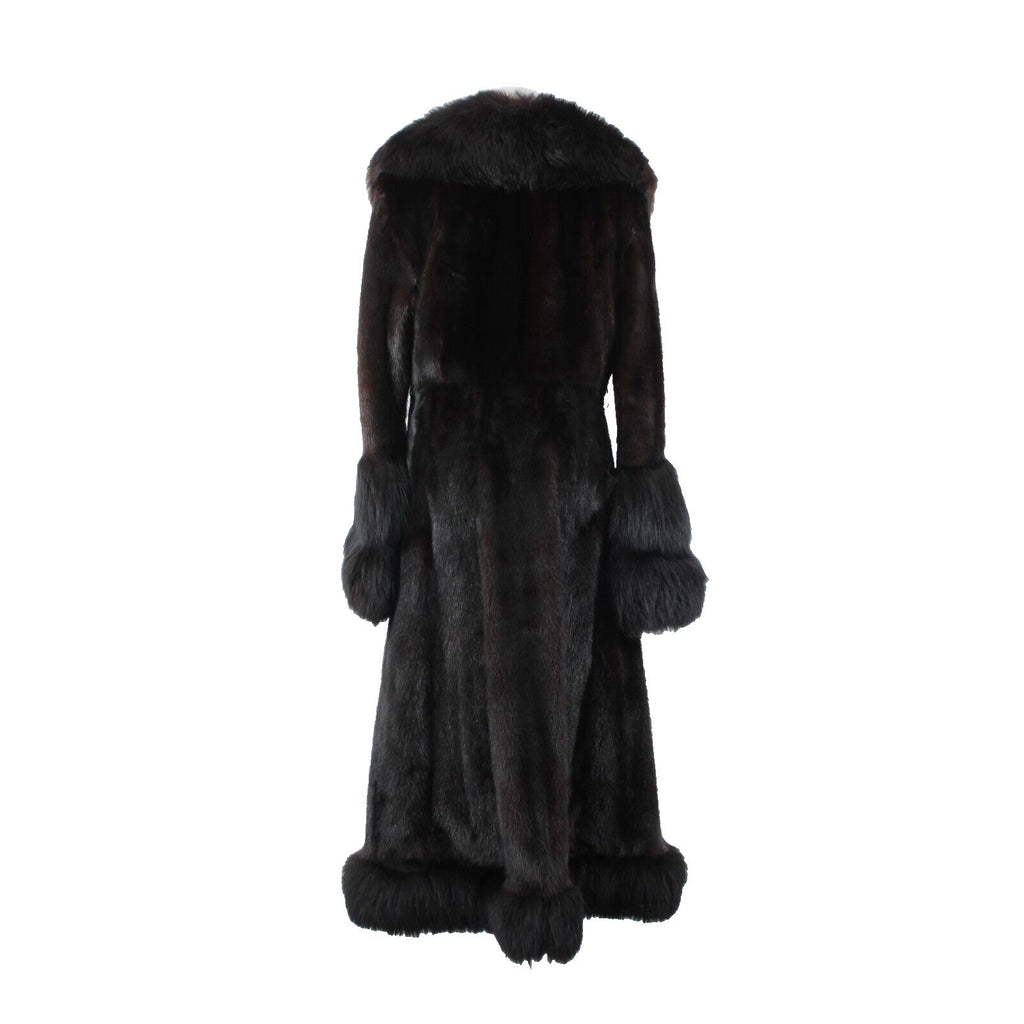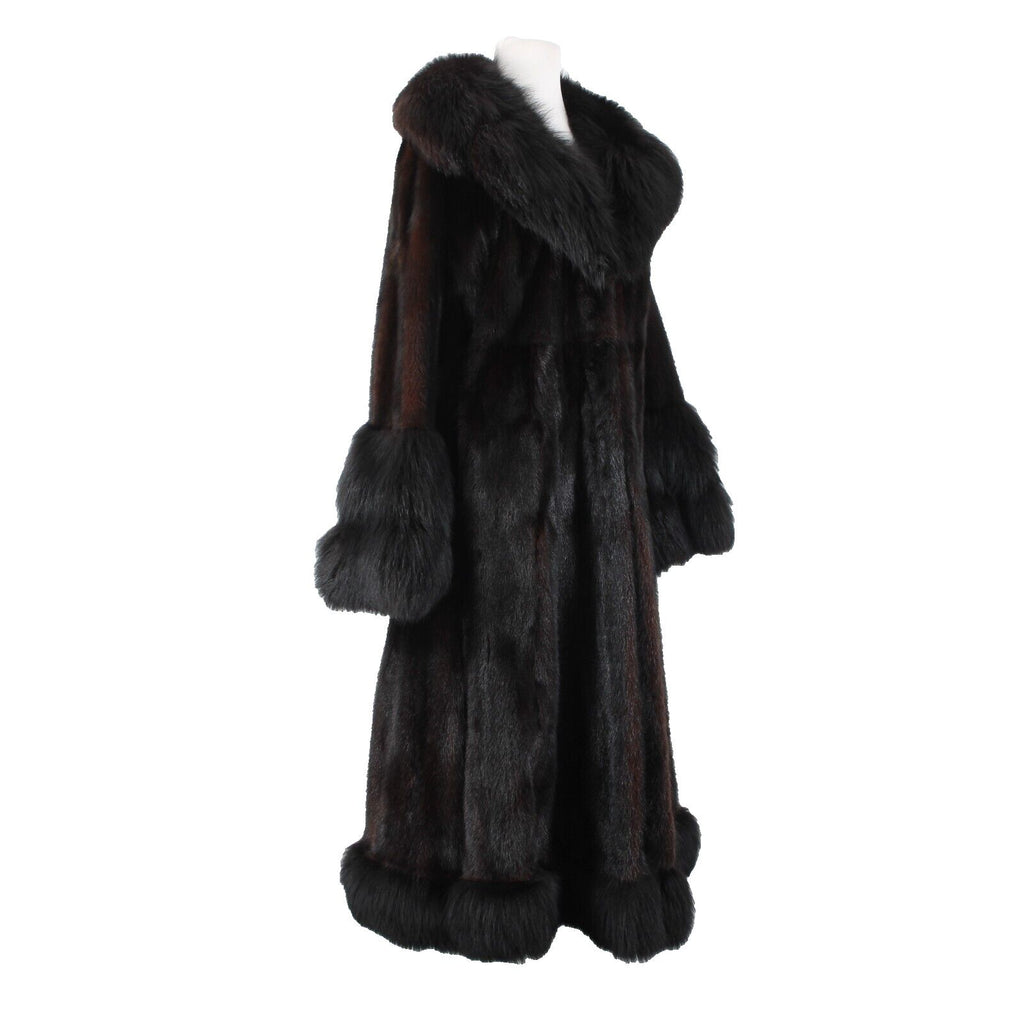 Oleg Cassini Black Mink w Fox Shawl Collar Sleeve Hem Trimmed Luxe Fur Coat
