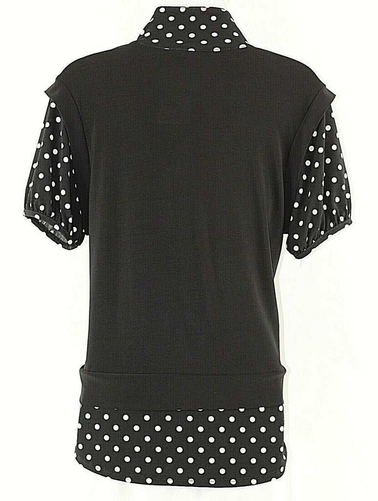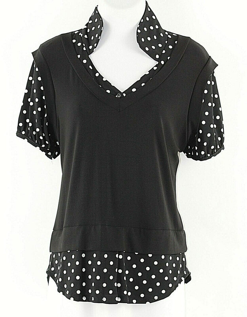 Olivia Paige NEW PL Black White Polka Dots Layered Look Poly Spandex Top