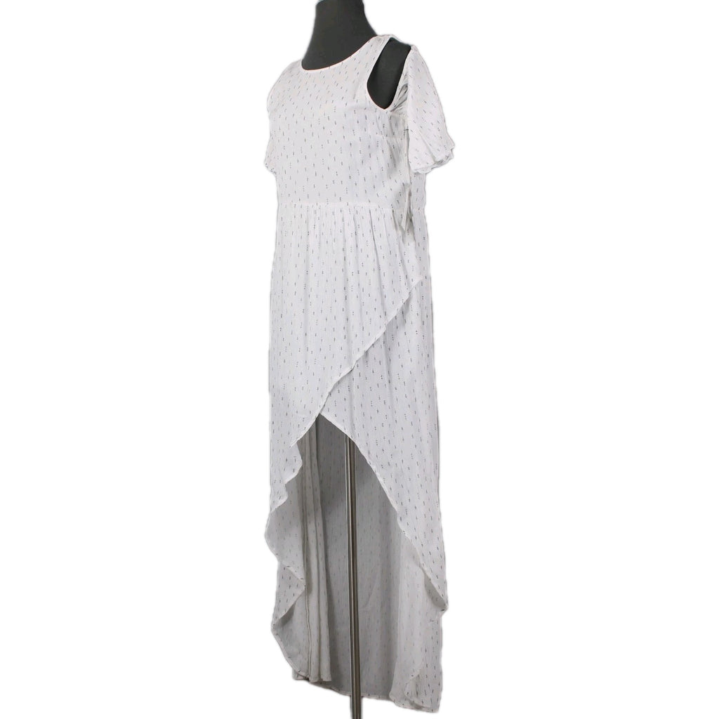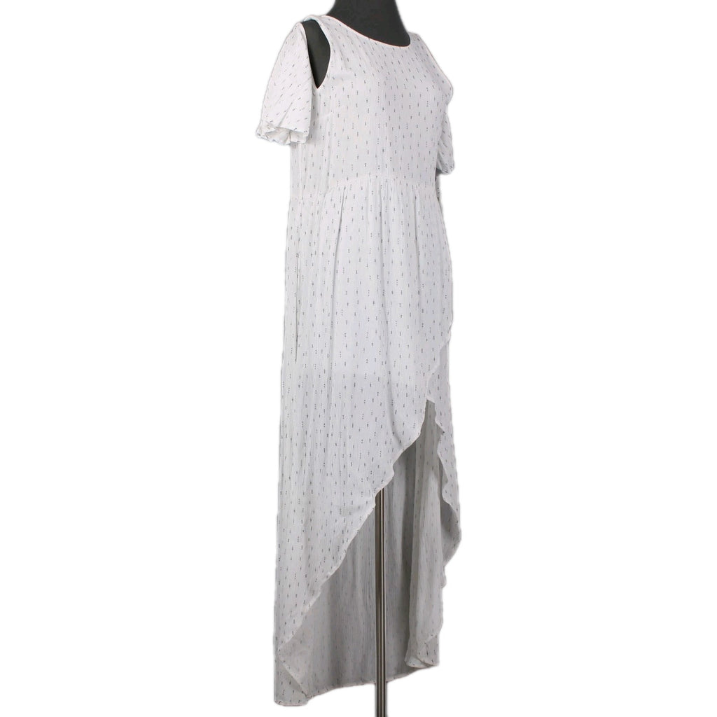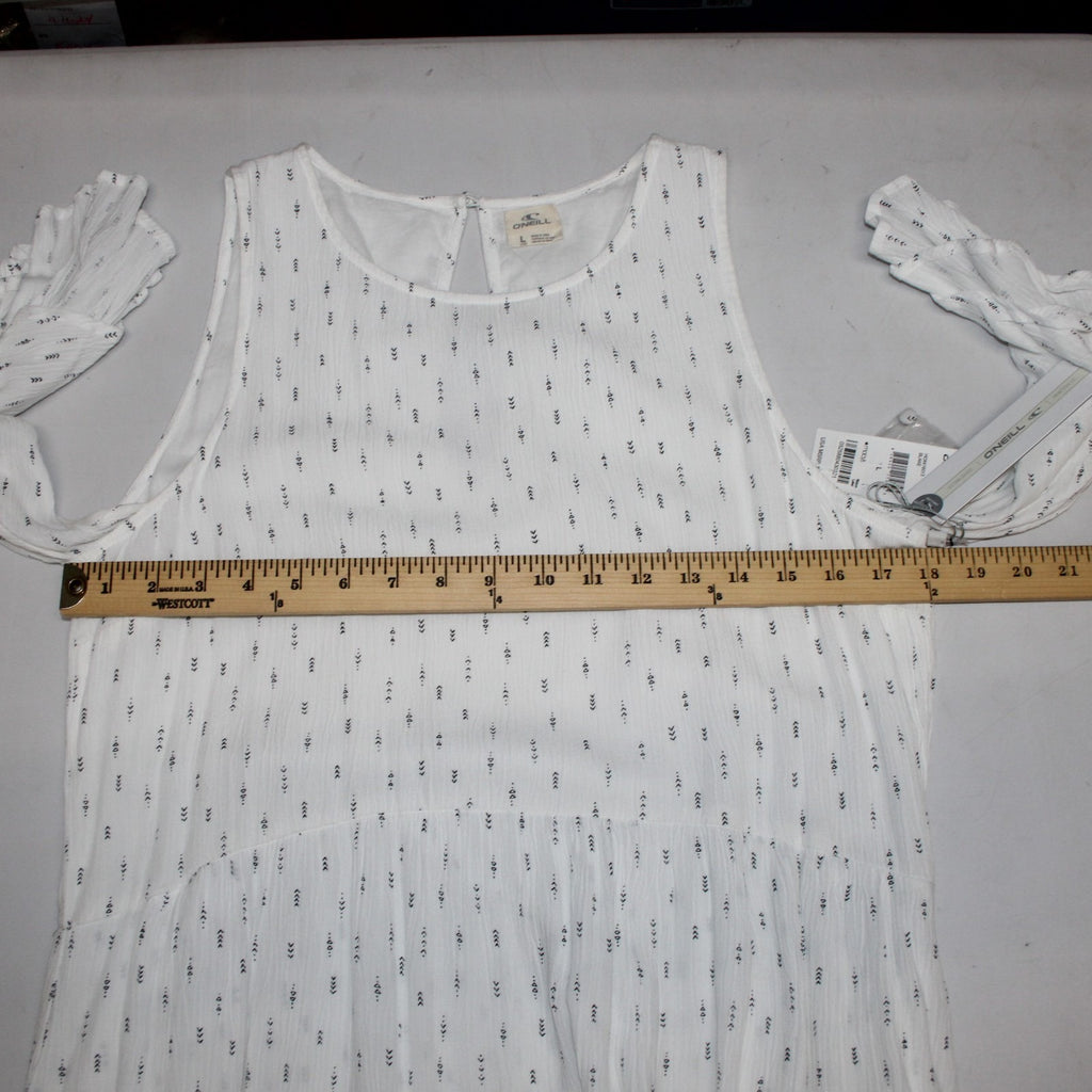 Oneill Dress NEW $60 Sz L White Black Cold Shoulder Lined Hi Lo 100% Viscose