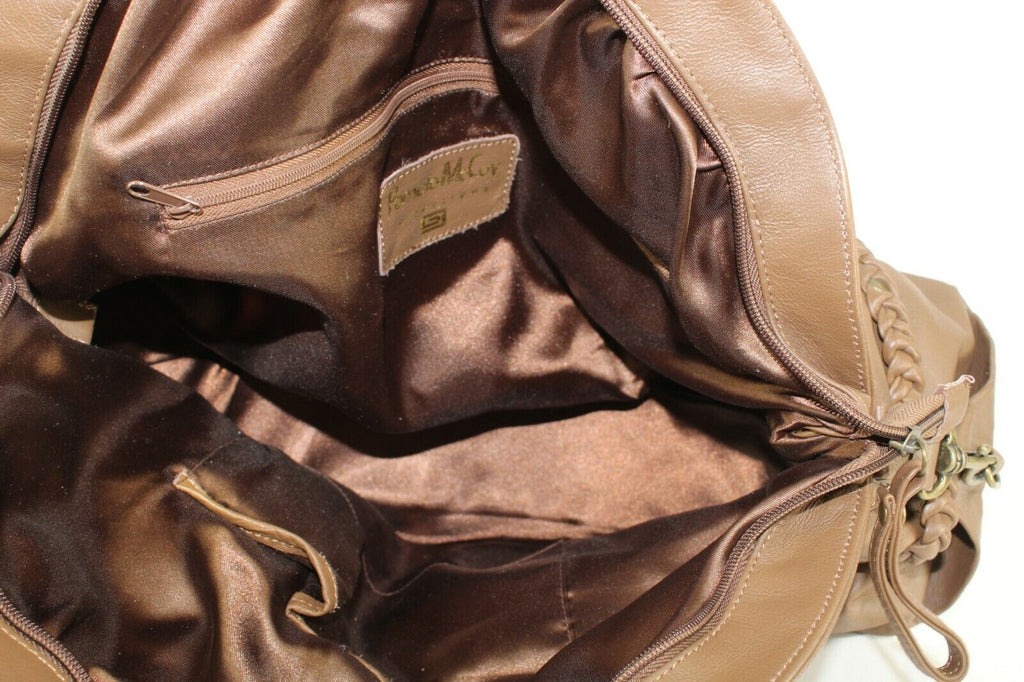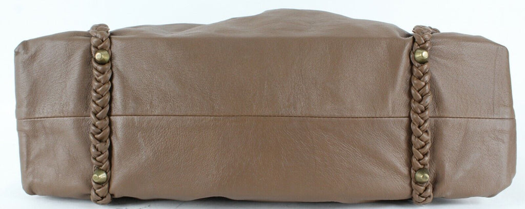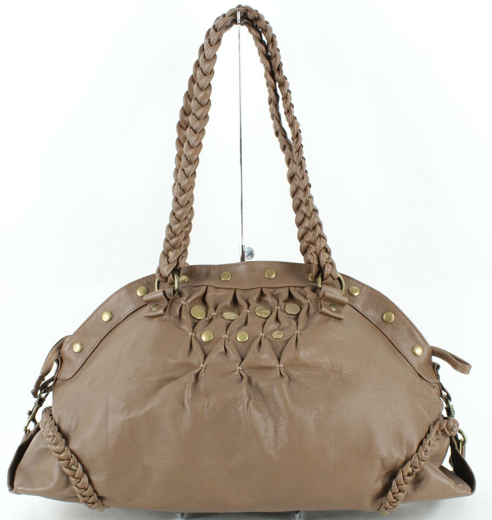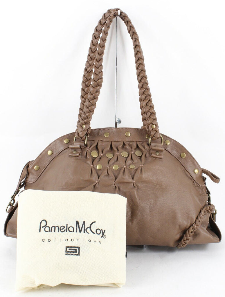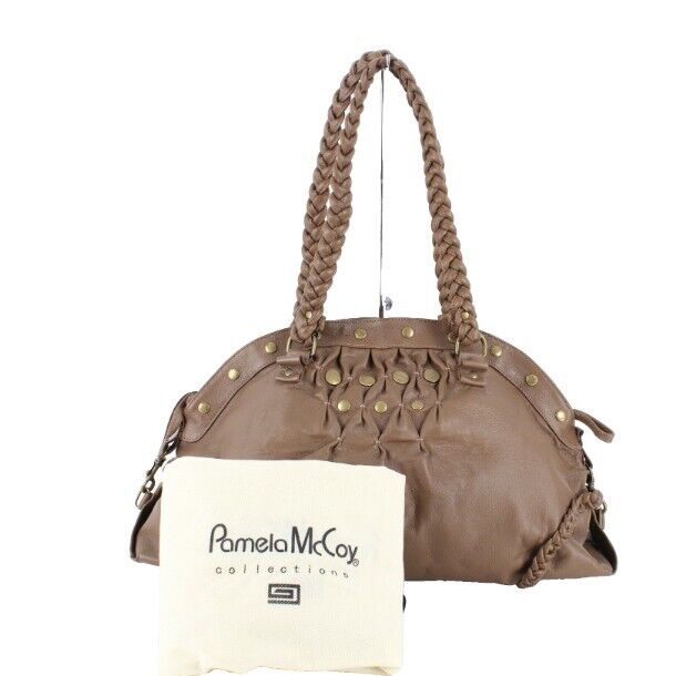 Pamela McCoy 19 x 10 Brown Brass Stud Faux Vegan Leather Shoulder Purse