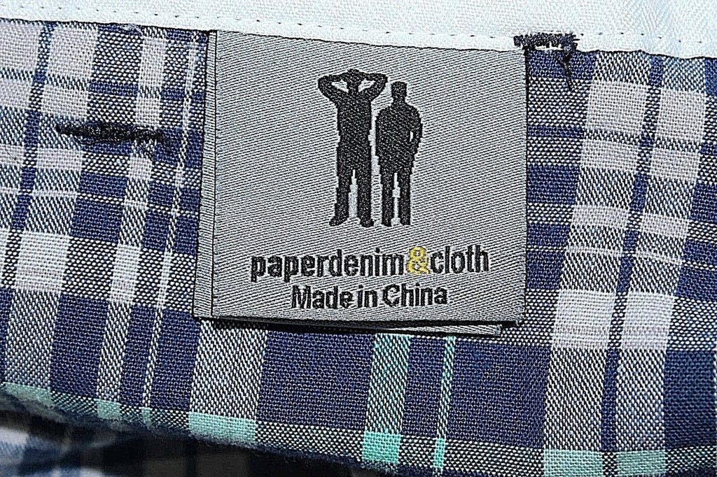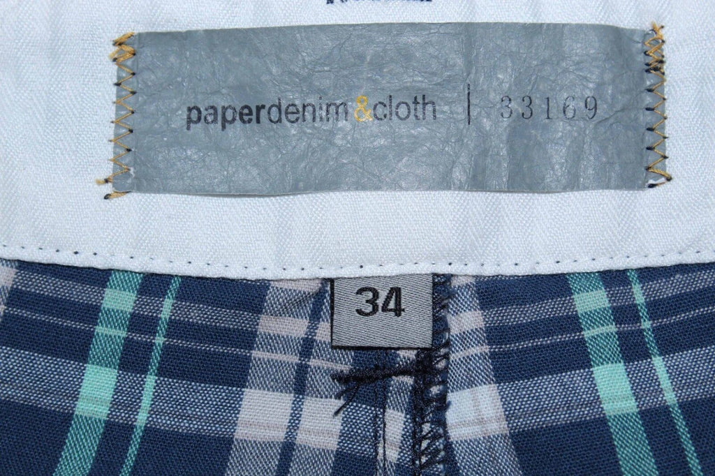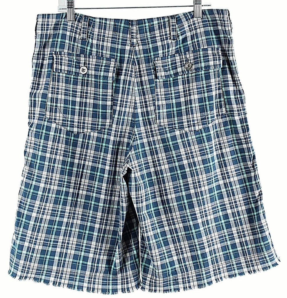 Paper Denim & Cloth Sz 34 x 11.5 Navy Multi Plaid 100% Cotton Frayed Shorts