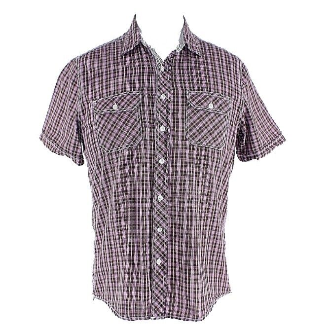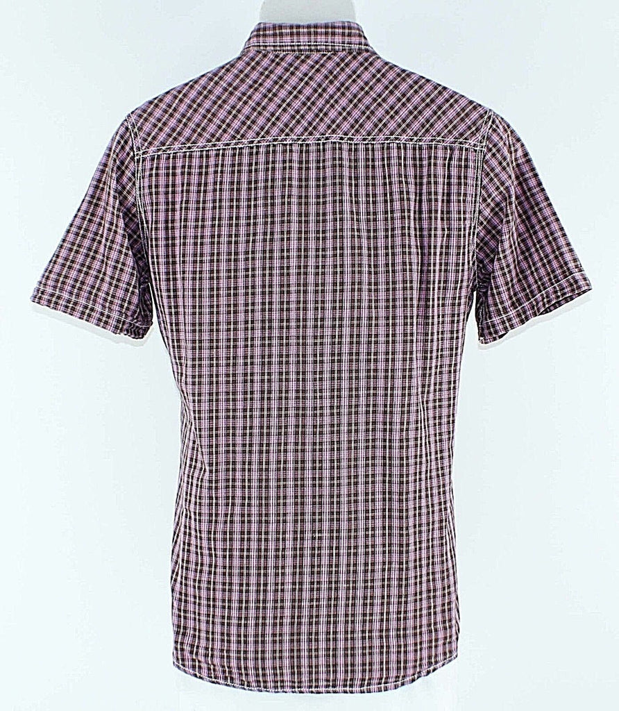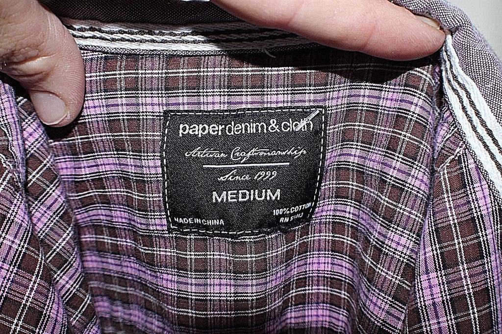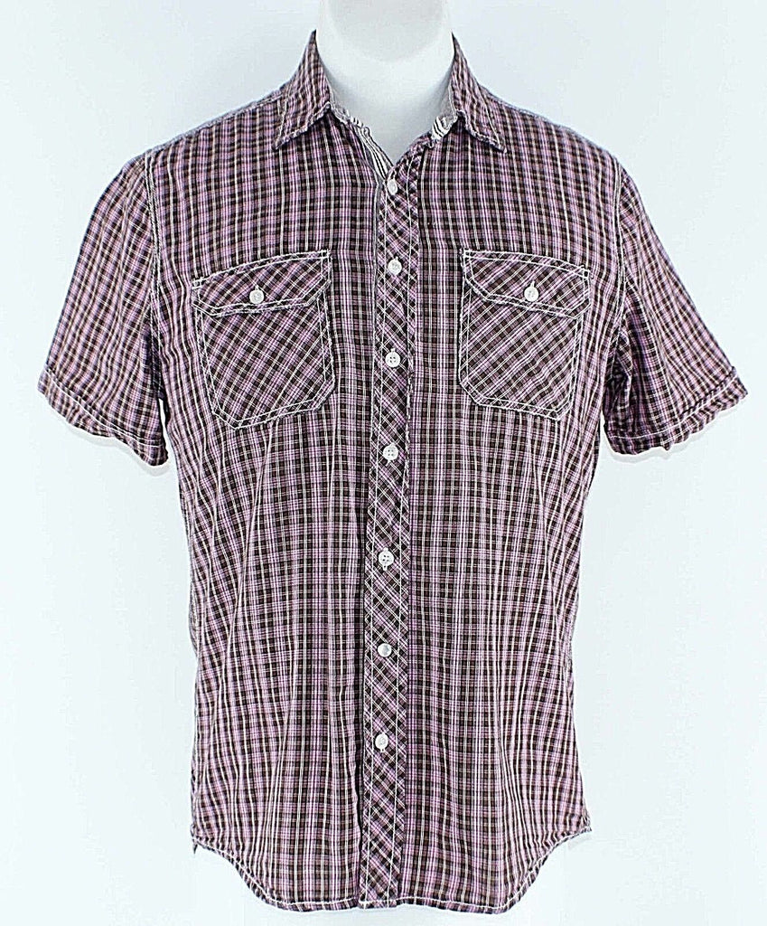 Paper Denim & Cloth Sz M Pink Brown SS 100% Cotton Men's Button Down Shirt