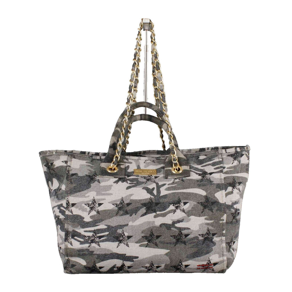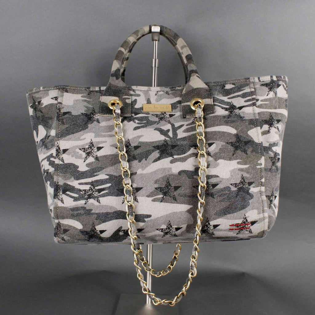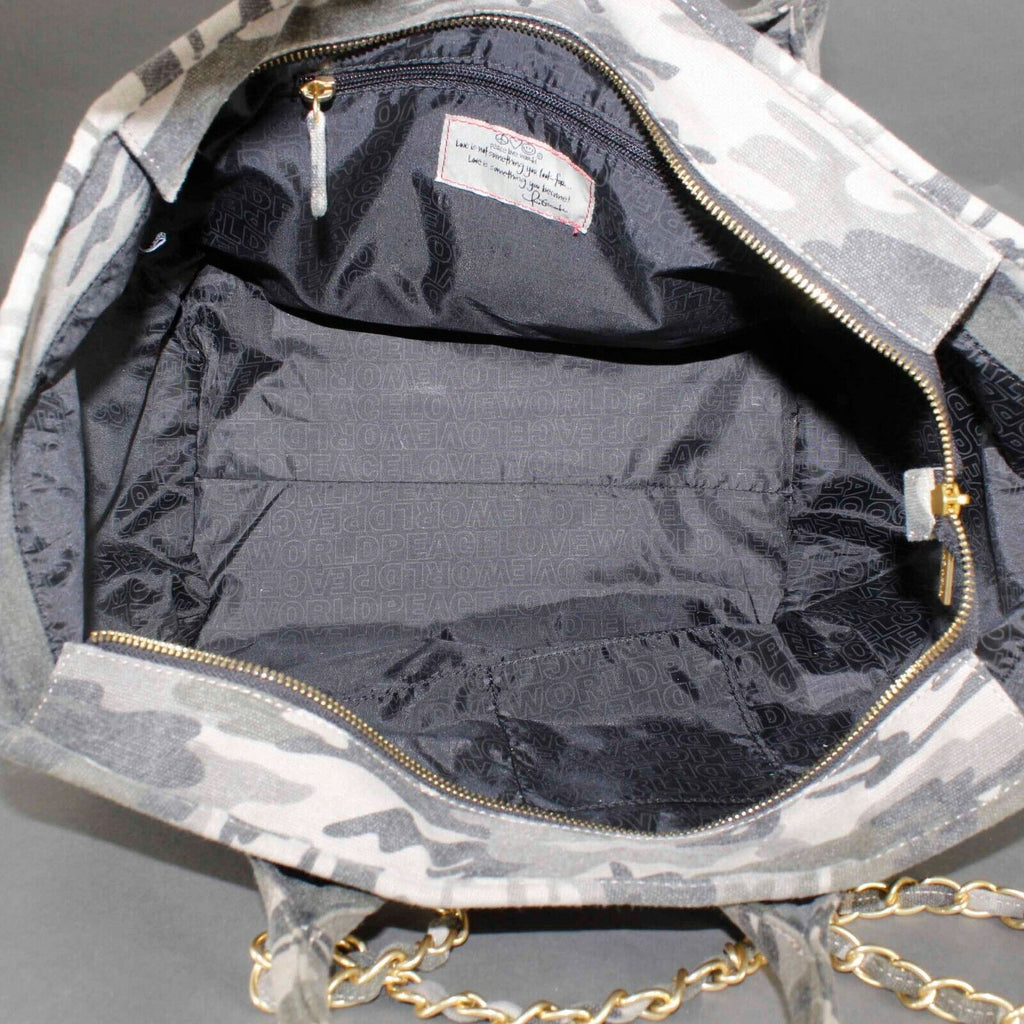 Peace Love World 11 x 20 Green Camo Lined Cotton Poly Multi Handle Tote