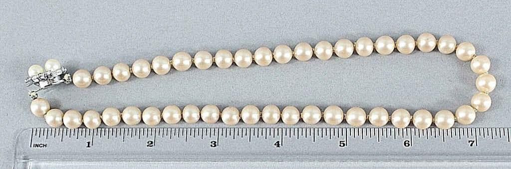 Pearls Cream Silvertone Rhinestone Clasp Single Strand Necklace Marked Japan