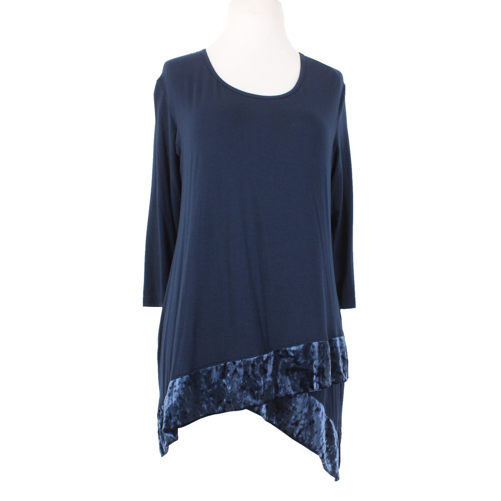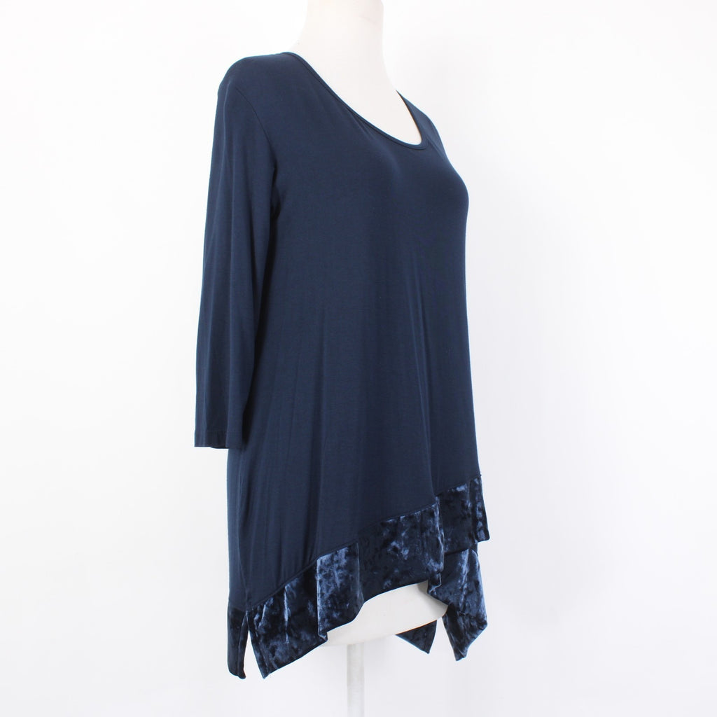 Pebble And Stone Top NEW Sz S Navy Blue Asymmetrical Rayon Spandex Top