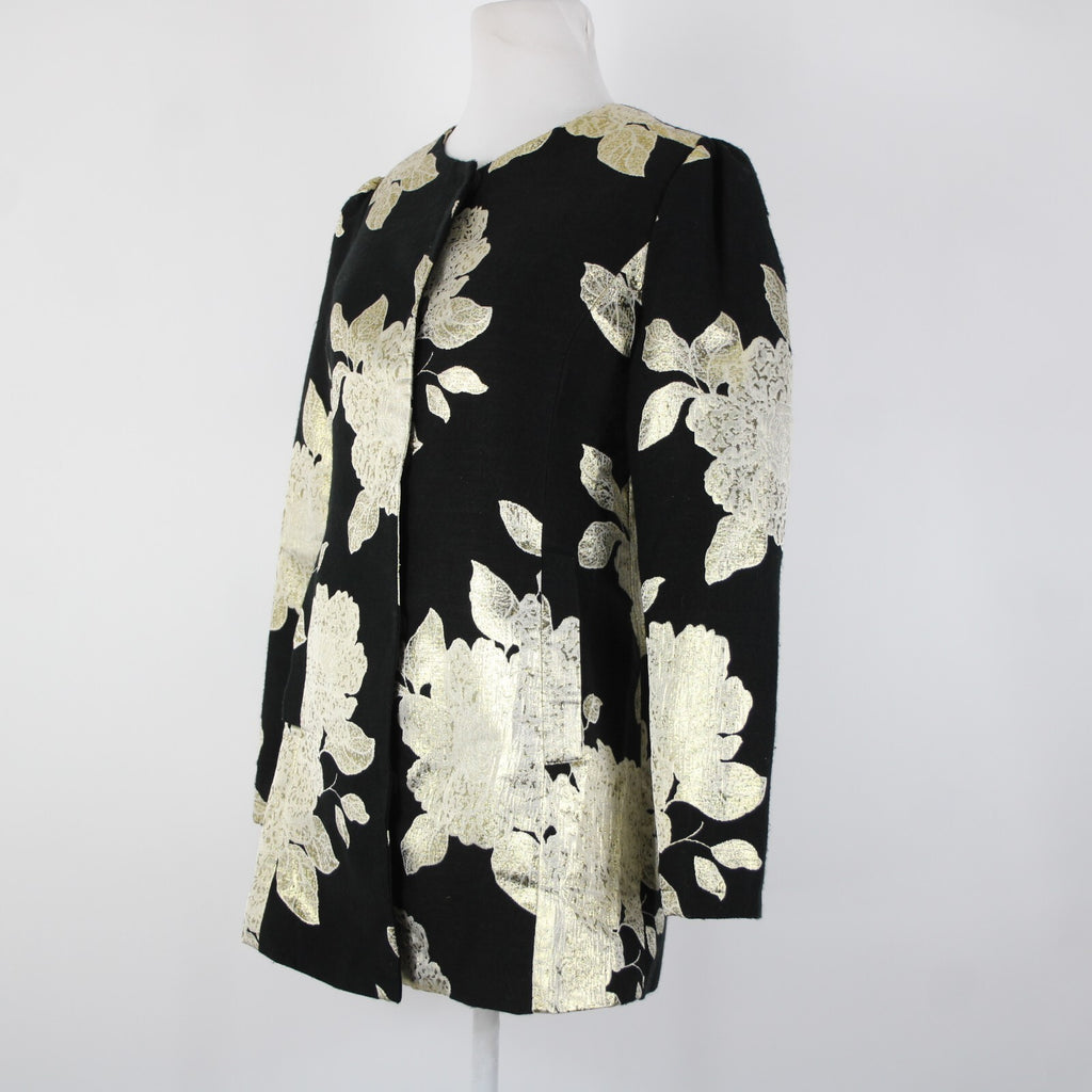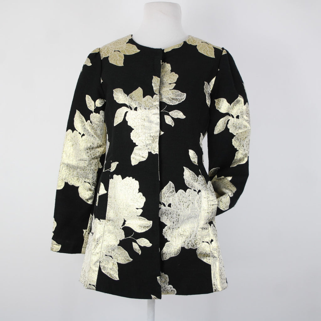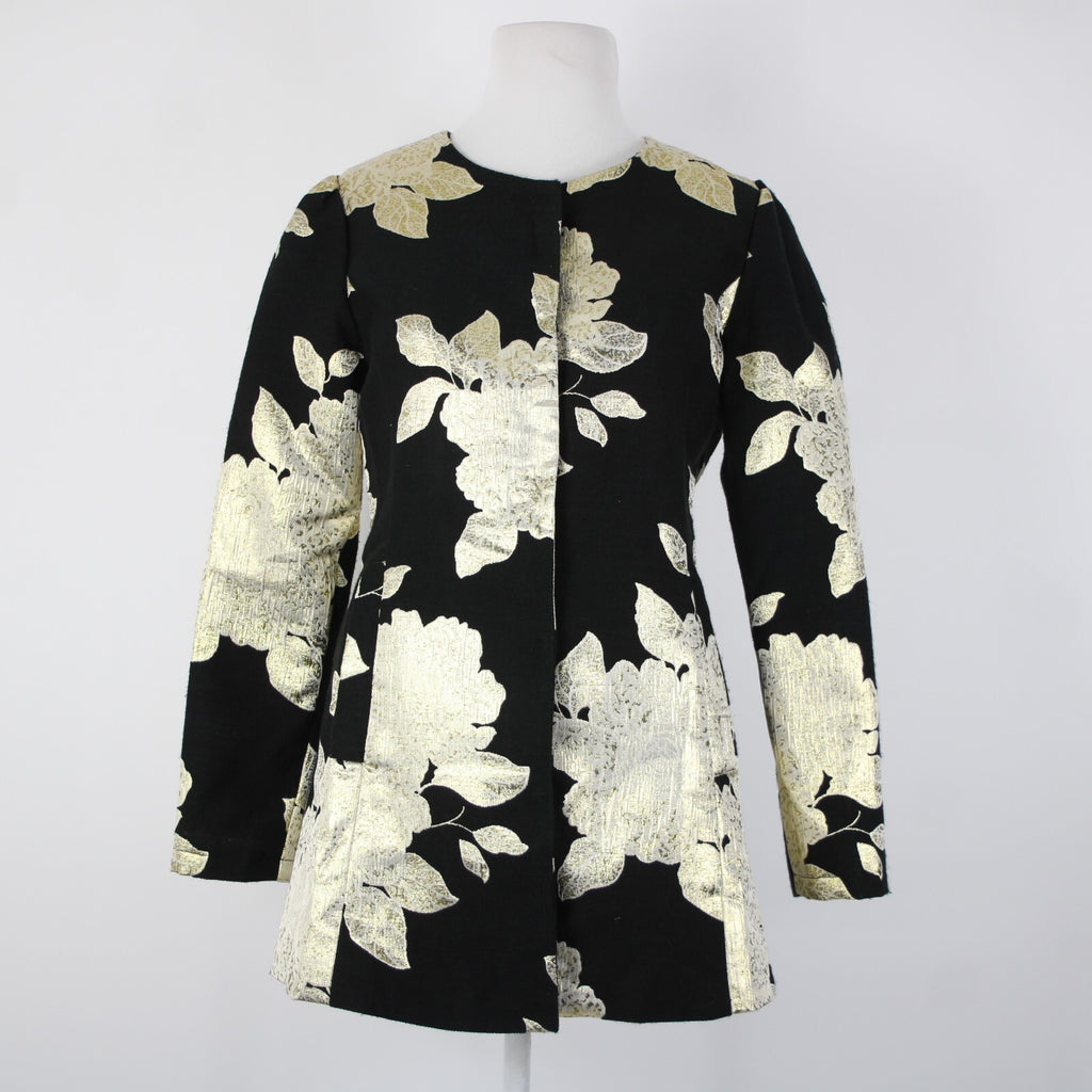 Peck And Peck NEW Sz S Black Gold Metallic Floral Lined 100% Polyester Jacket