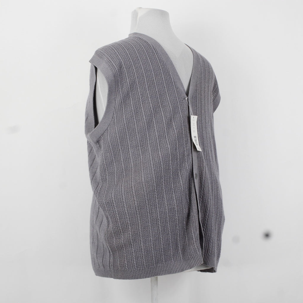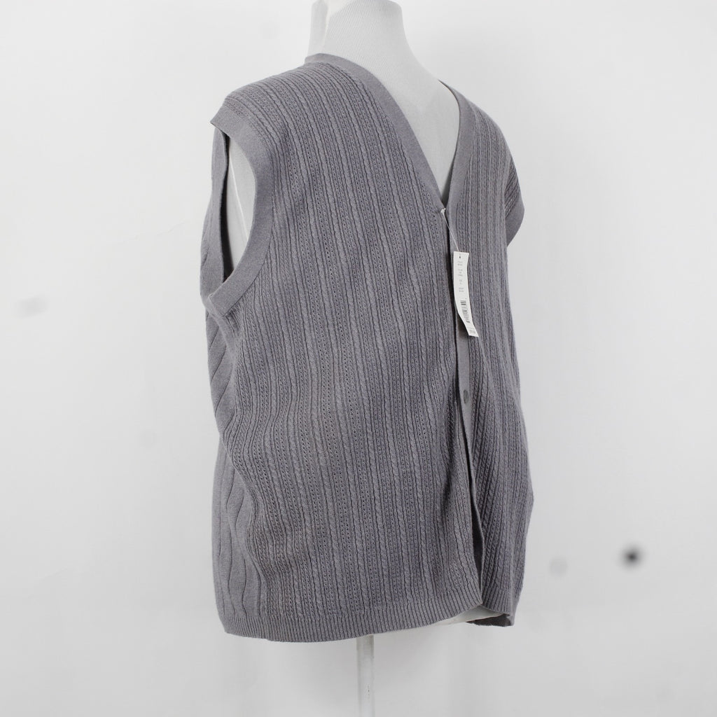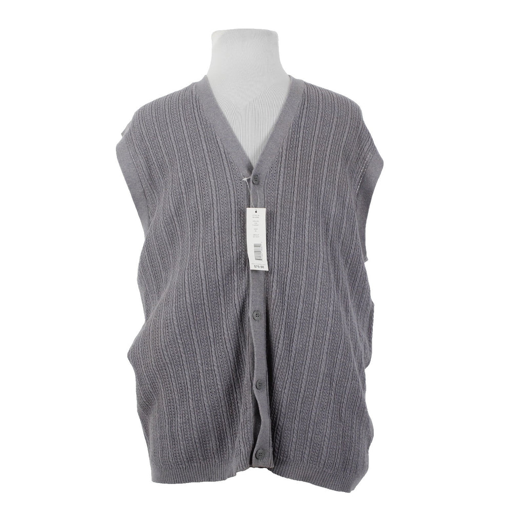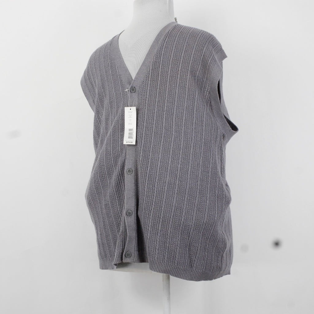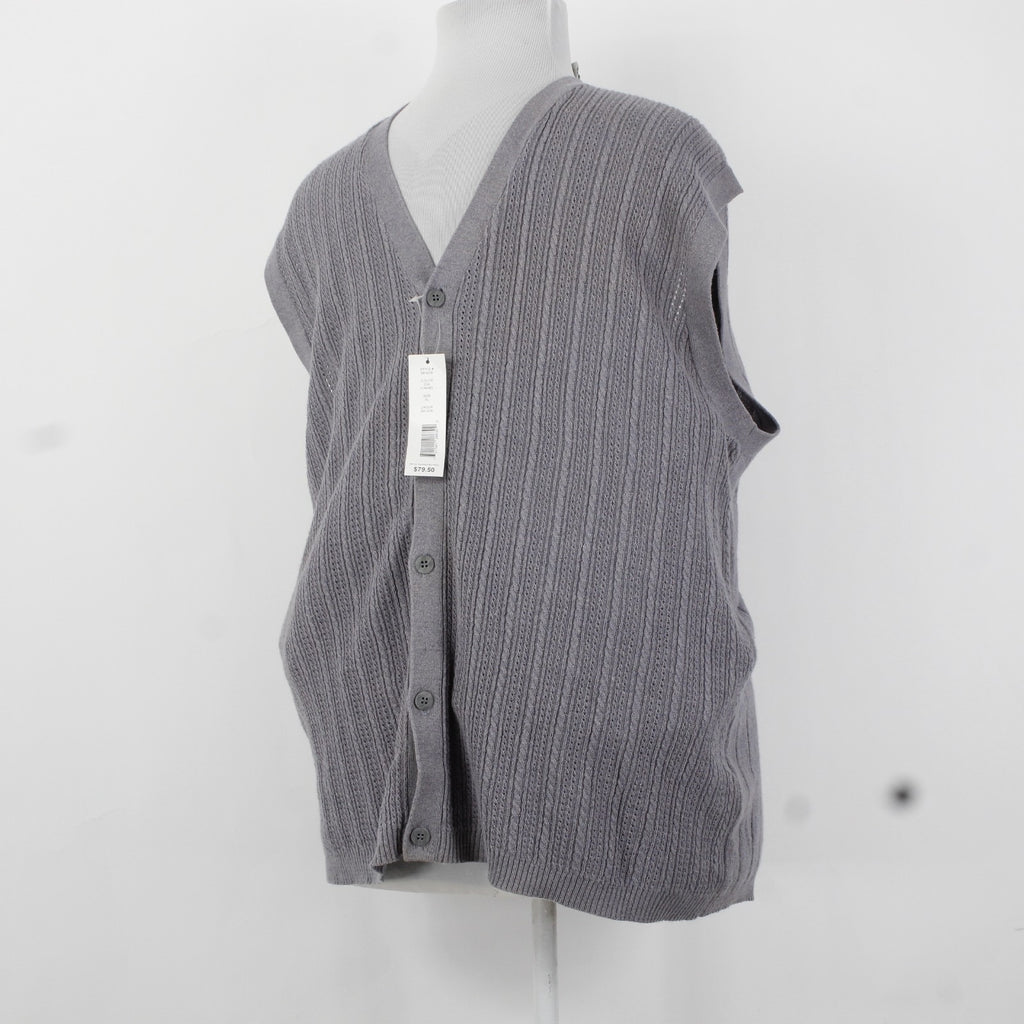Perry Ellis Vest NEW $80 Sz XL Flannel Gray Ribbed Button Down V Neck Rayon Vest
