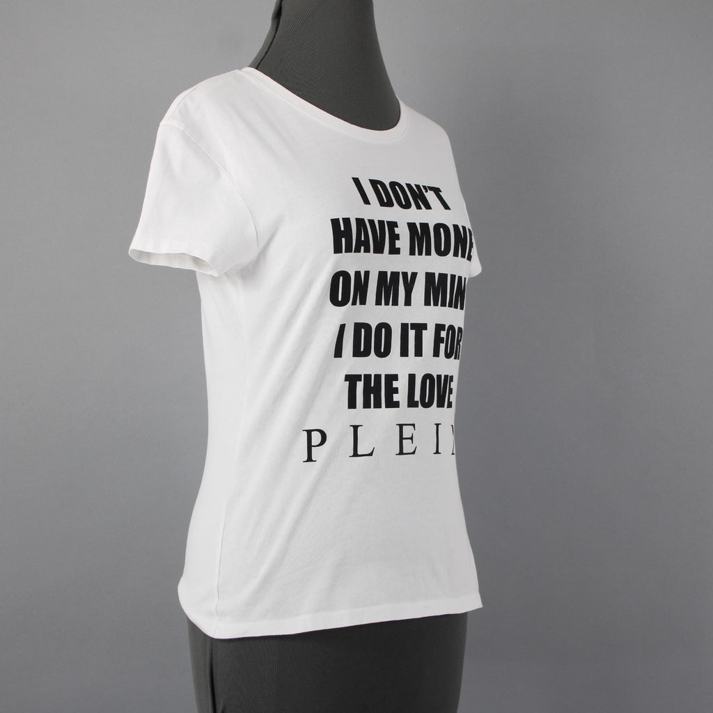 Philipp Plein White Black 'I Don't Have Money...Love ' Cotton Graphic Tee Shirt