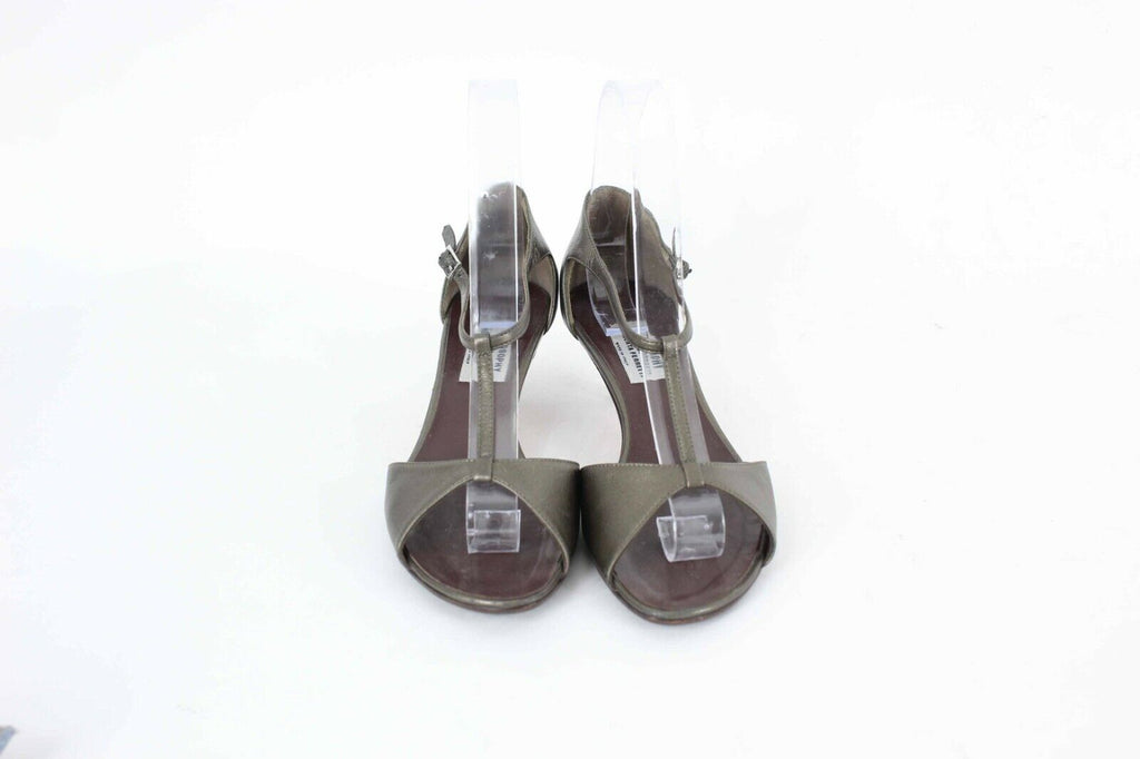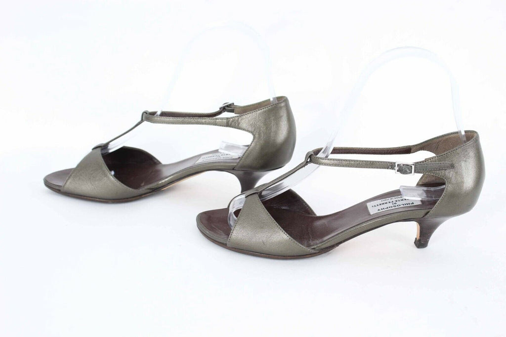 Philosophy Di Alberta Ferretti Sz 35 Olive Kitten Heel Strappy Leather Shoe