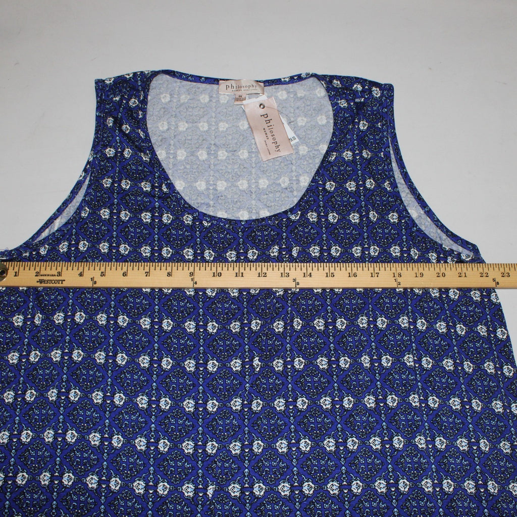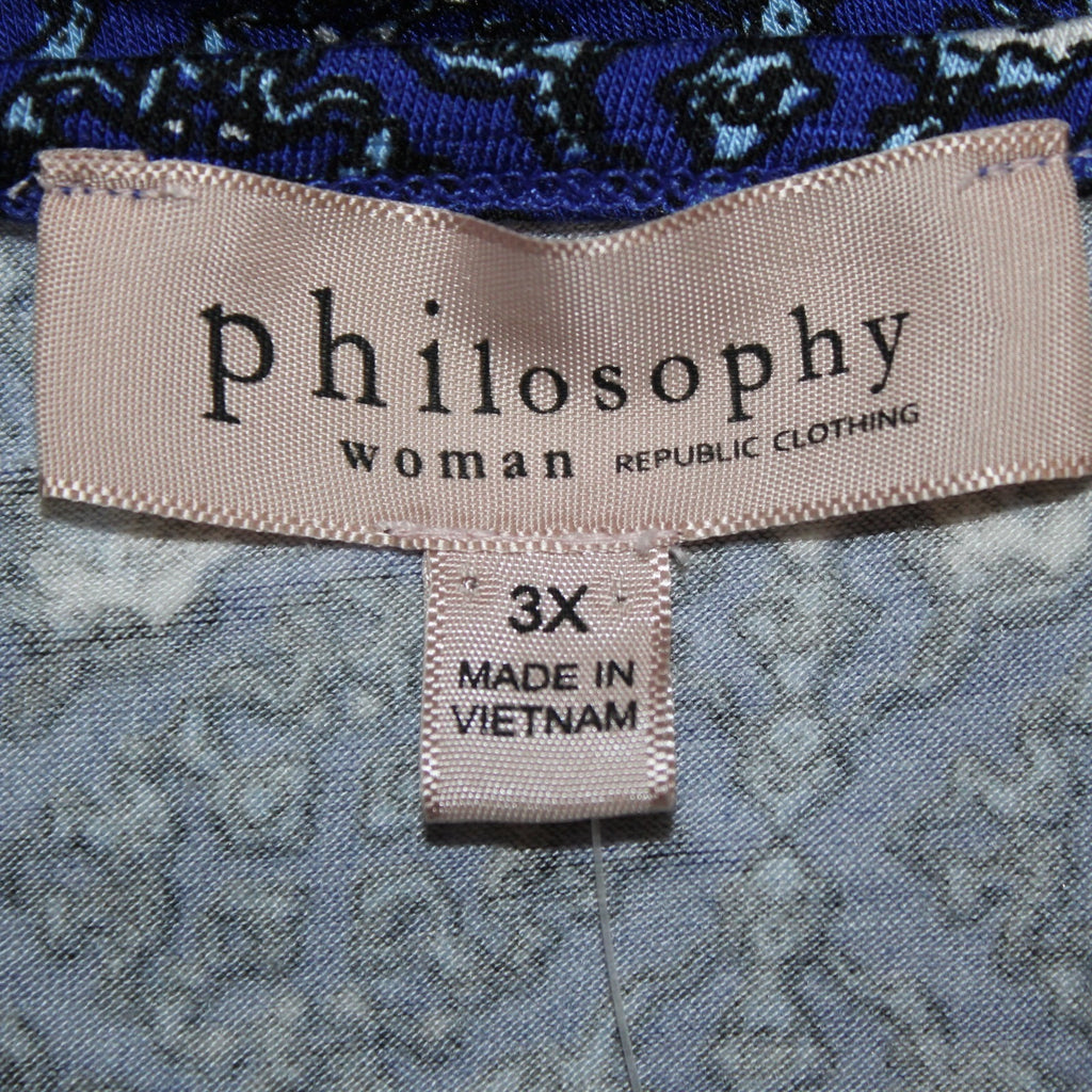 Philosophy Top NEW $58 Sz 3X Navy Blue White Printed Rayon Spandex Top