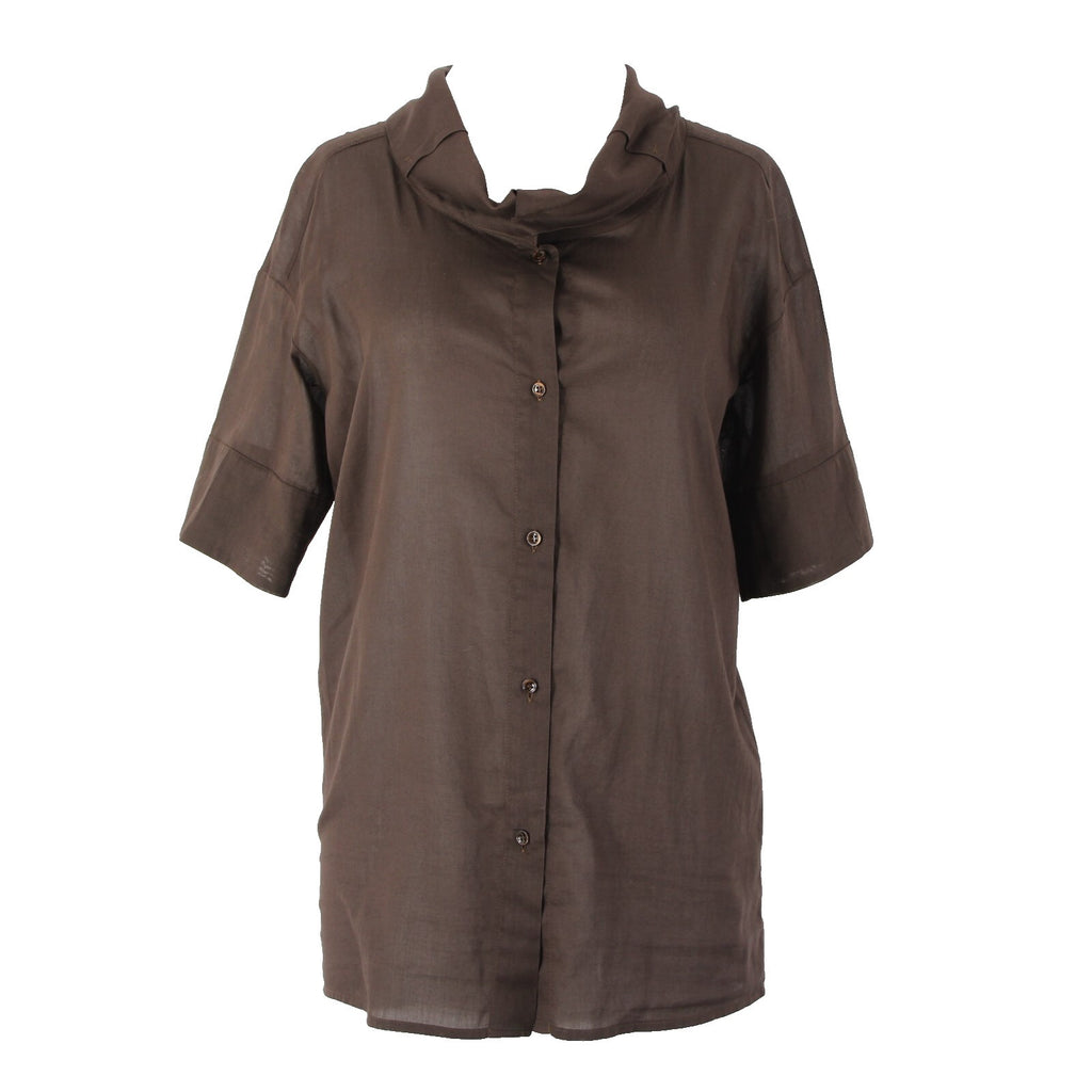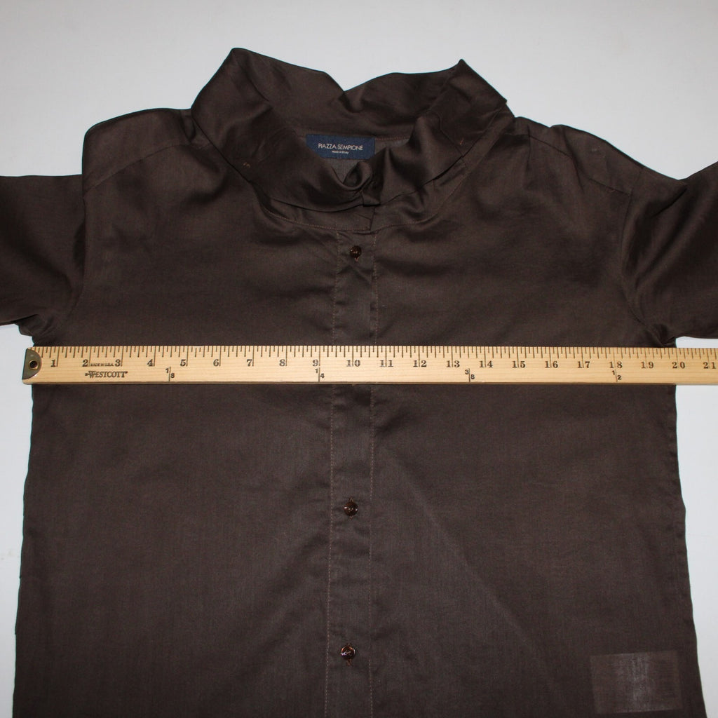 Piazza Sempione Sz 40 Brown Collared Buttons Short Sleeve 100% Cotton Top