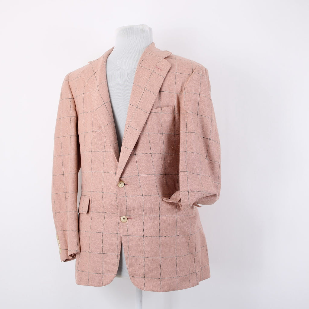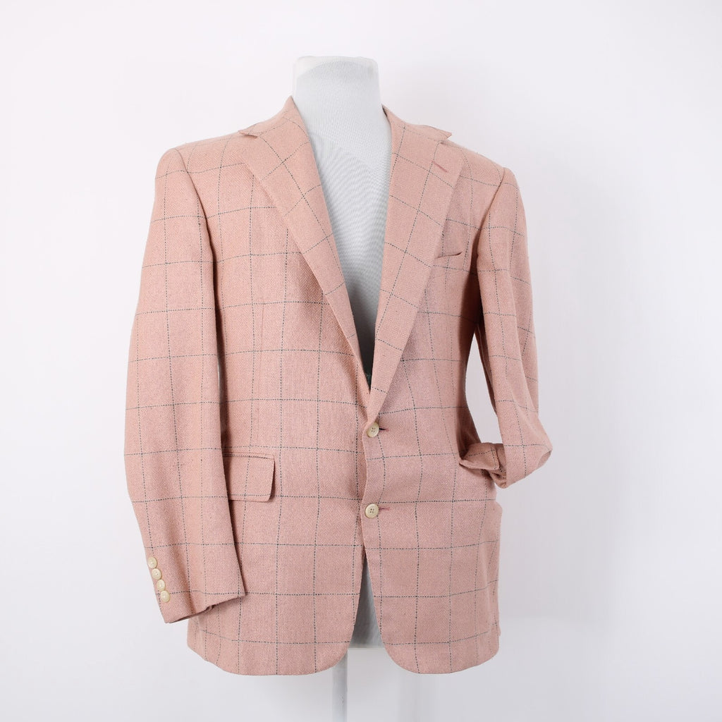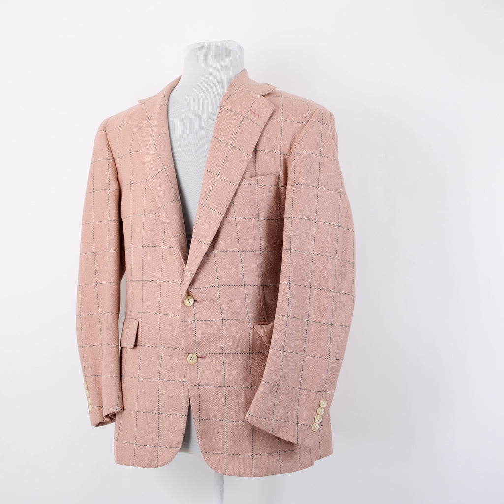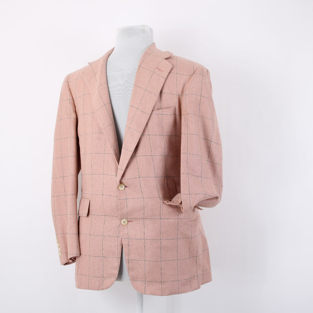 Polo Ralph Lauren Sz 41R Pink Green Windowpane Raw Silk Lined 2 Button Jacket