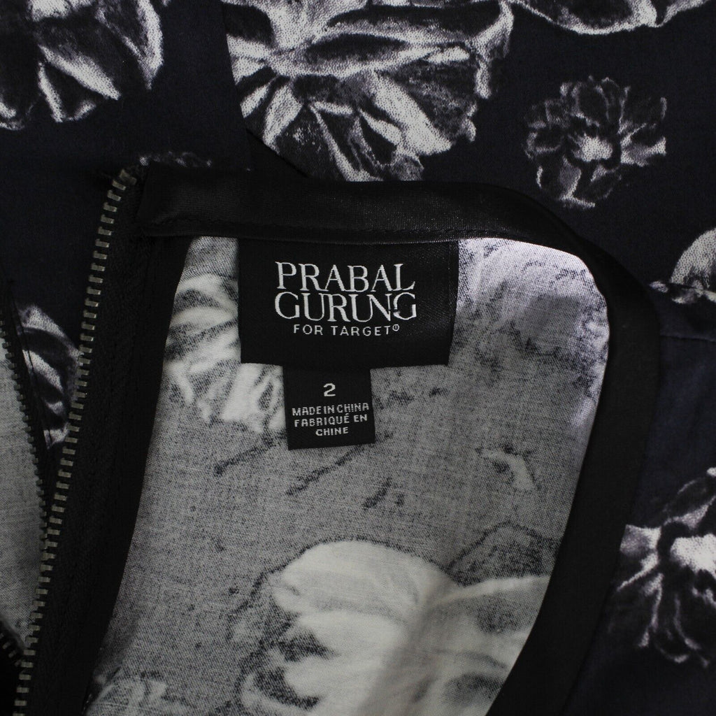 Prabal Gurung NEW Sz 2 Navy Blue White Zip Back Cotton Poly Blend Woven Dress