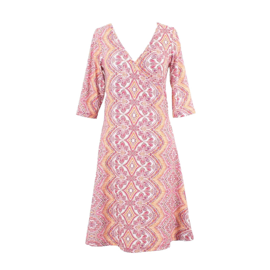 Prana Sz S Magenta Multi Side Ruch Secret Pocket Stretchy Knit Dress