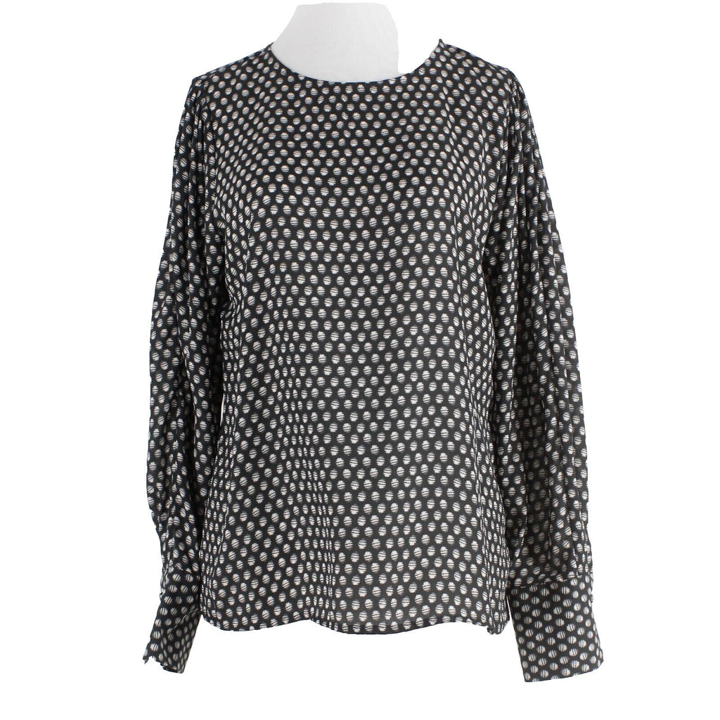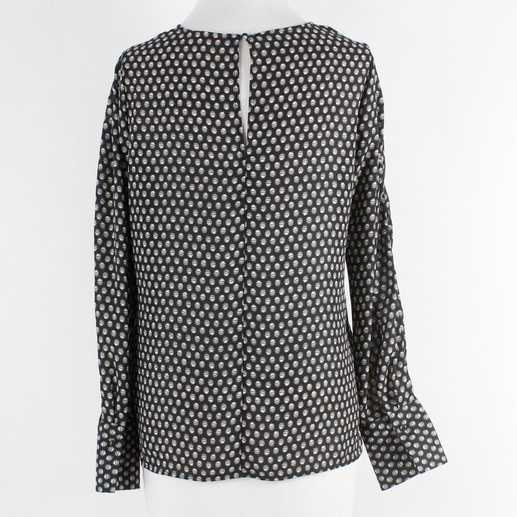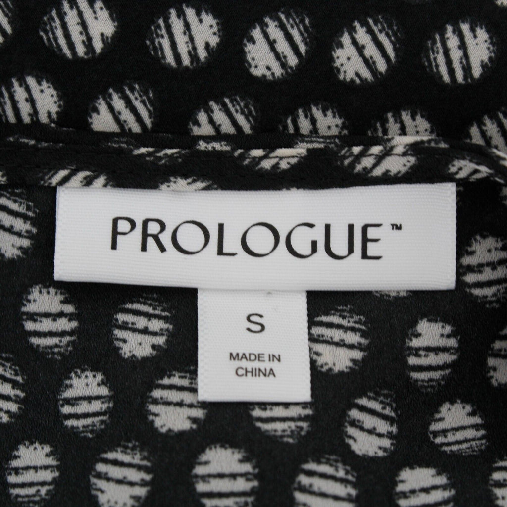 Prologue Sz S Black Ivory Striped Dots Long Full Sleeve 100% Poly Woven Top