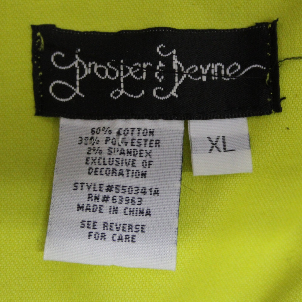 Prosper Devine Sz XL Lime Green Rhinestone 3/4 Slv Pckt Cotton Poly Spndx Jacket