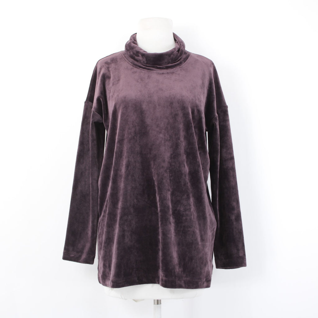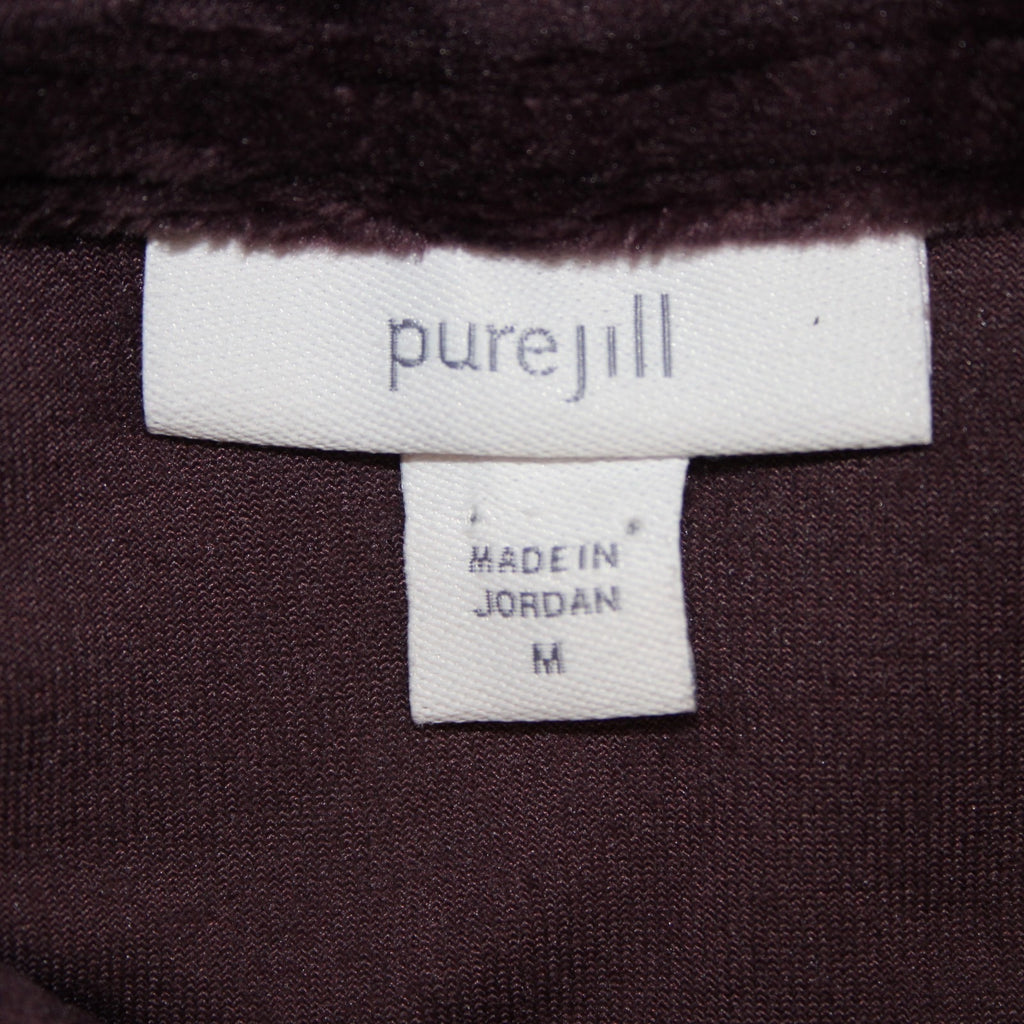 Pure Jill Sweater Sz M Purple Collared Velour Long Sleeve Poly Spandex Sweater