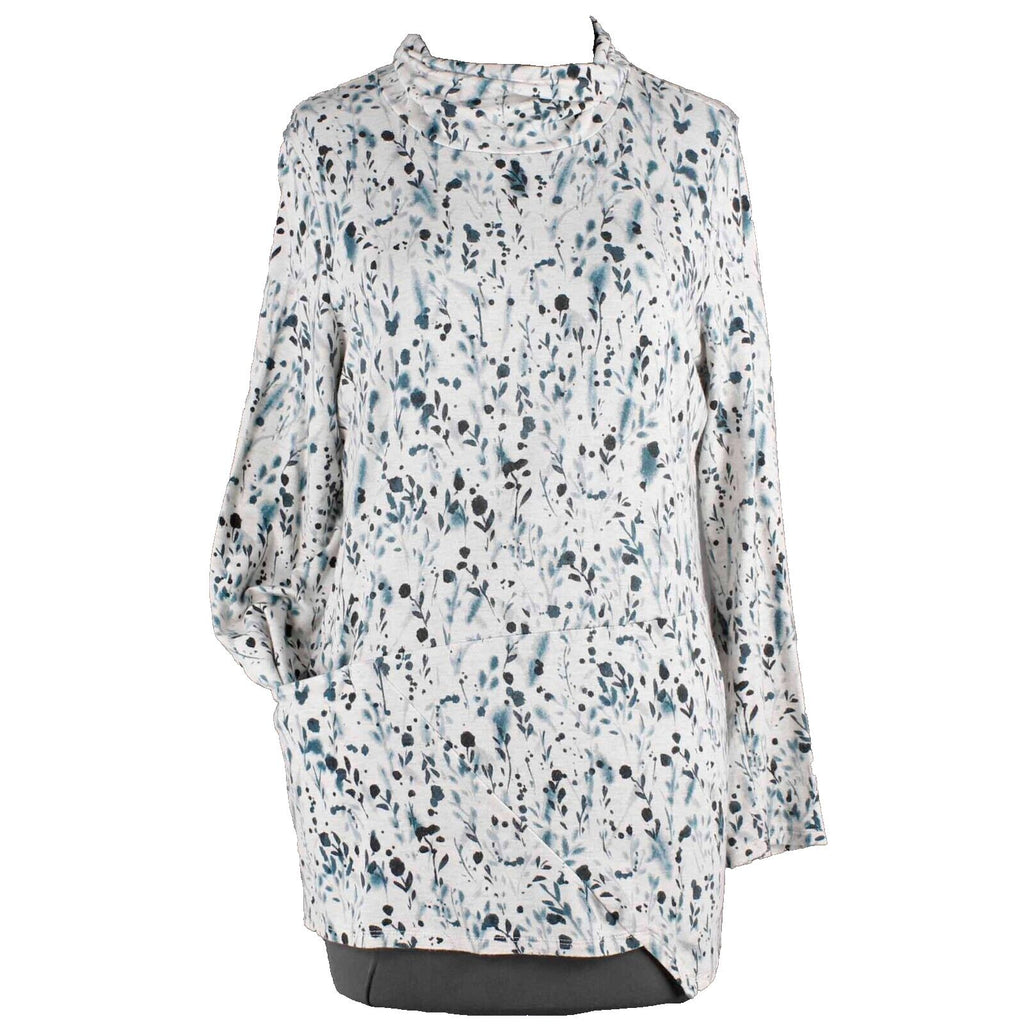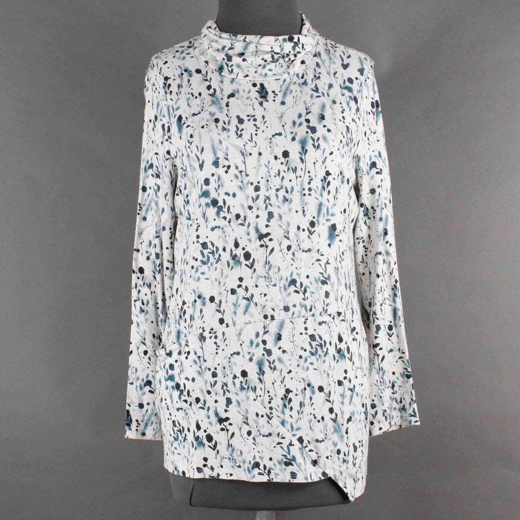 Pure Jill Sz M Gray Teal Turtleneck Pocket Asymmetric Tencel Spandex Knit Top