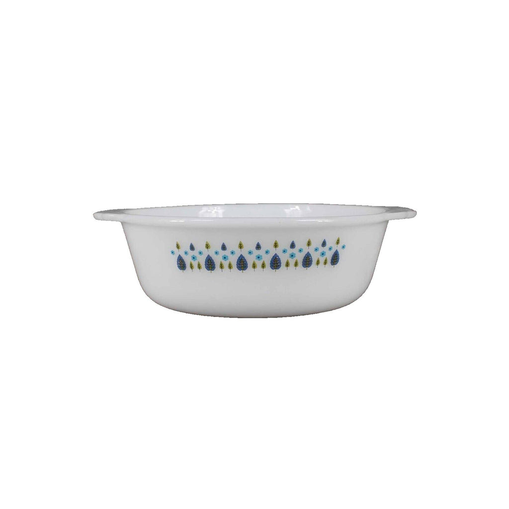 Pyrex 9.5 X 3 White Blue Green Tree Lead Design Round Baking Dish
