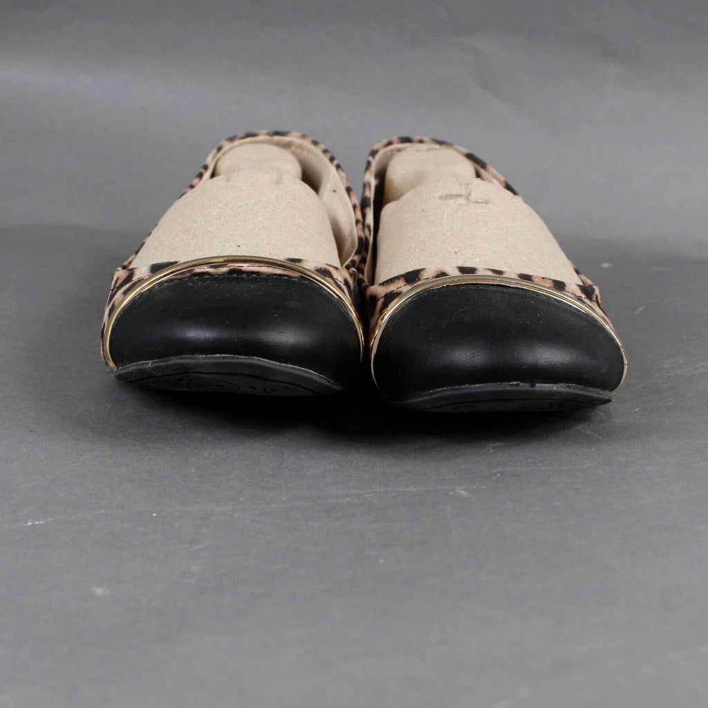 Qupid Sz 10 Black Brown Gold Vegan Animal Flat Slip On Shoe