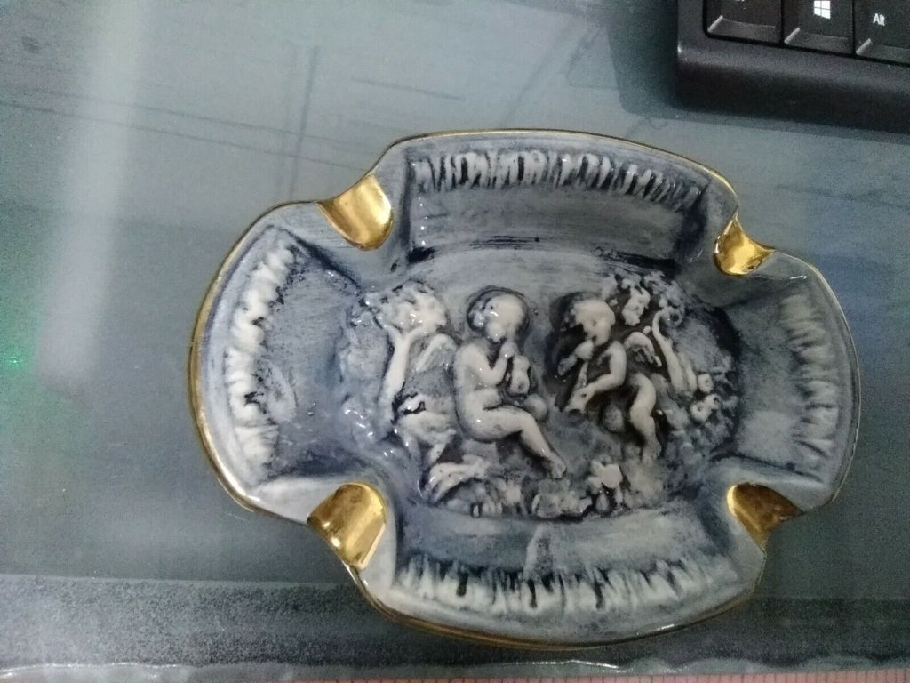 R Capodimonte Blue Cream Gold Trim Bas Relief Ashtray