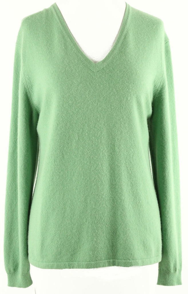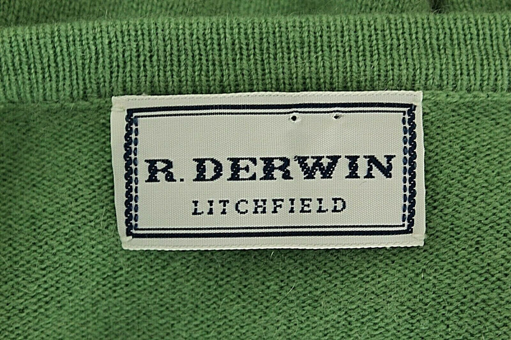 R Derwin Litchfield Sz M Celadon Green V Neck 100% 2 Ply Cashmere Sweater