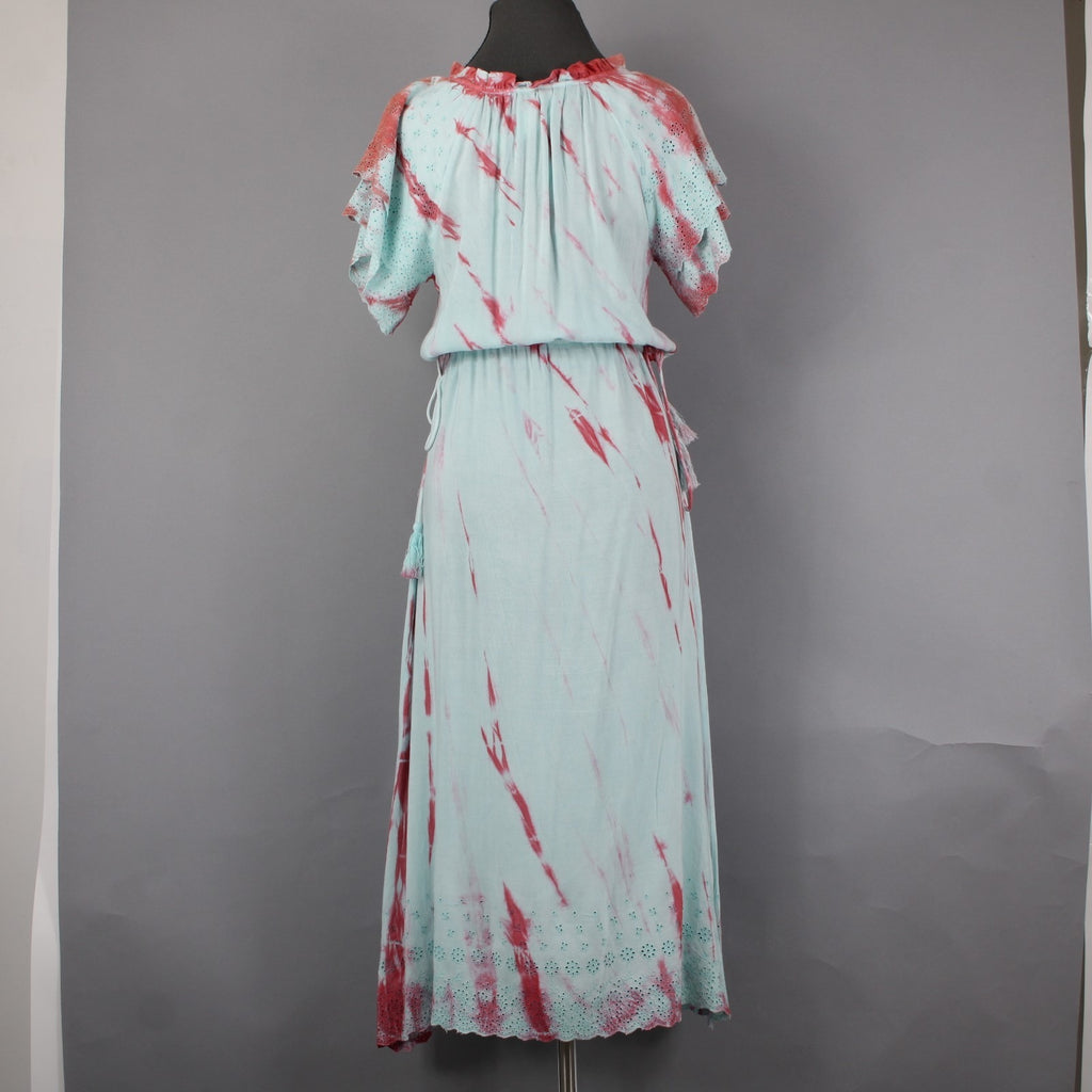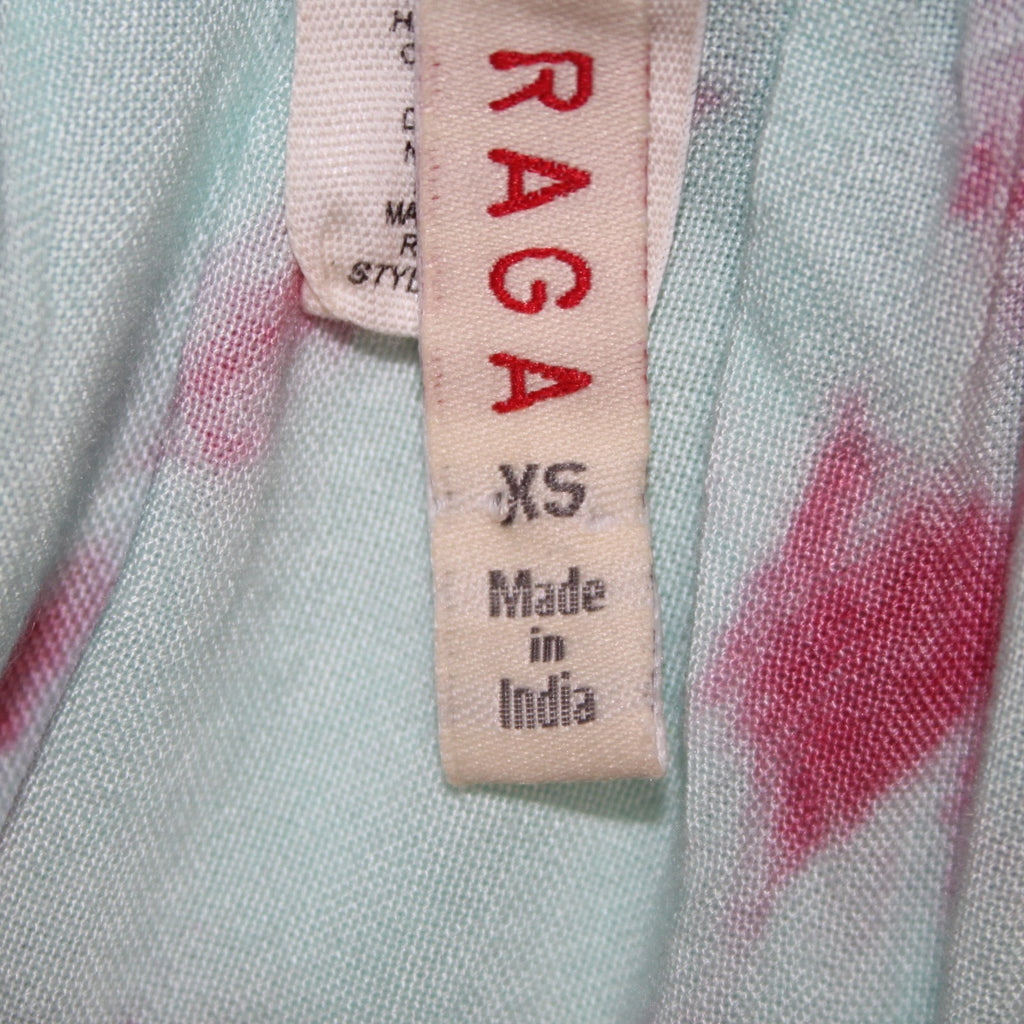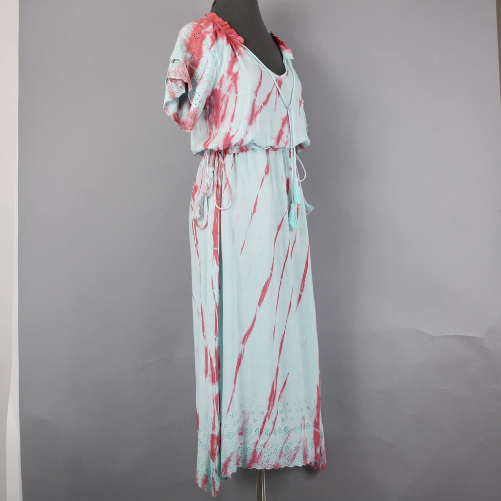 Raga Dress Sz XS Blue Pink Tie Dye Maxi Drawstring Waist 100% Viscose Dress