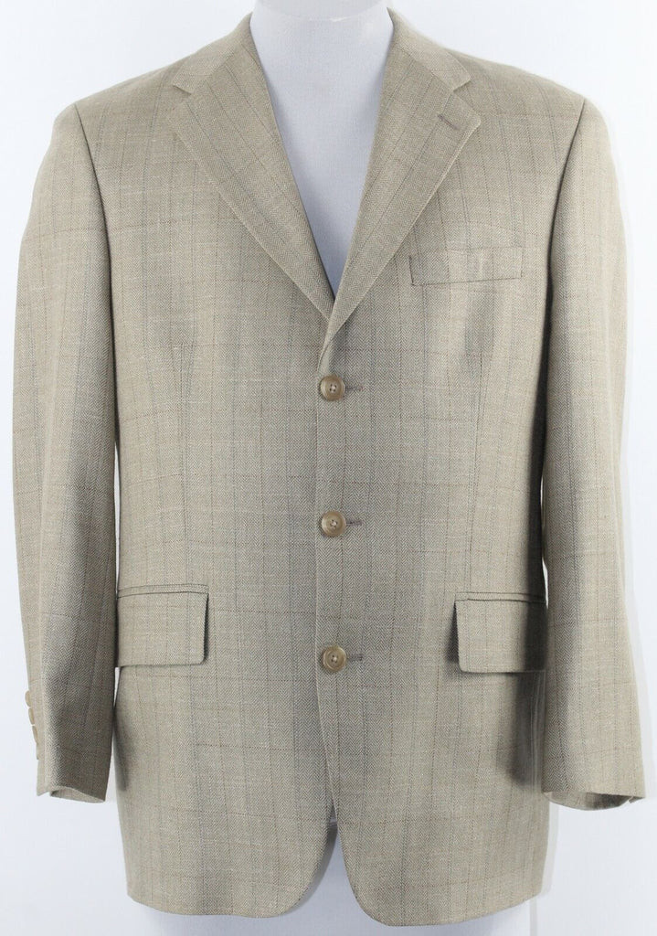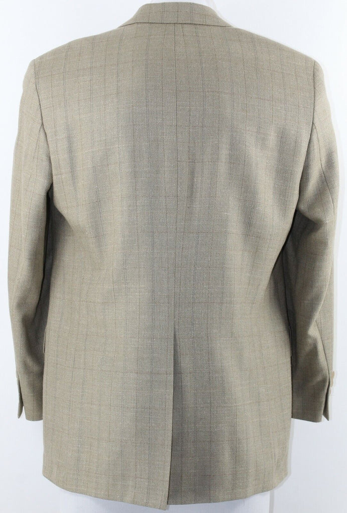Ralph Lauren Chaps Sz 40R Tan Olive Plaid Pleated Silk Blend Blazer Jacket