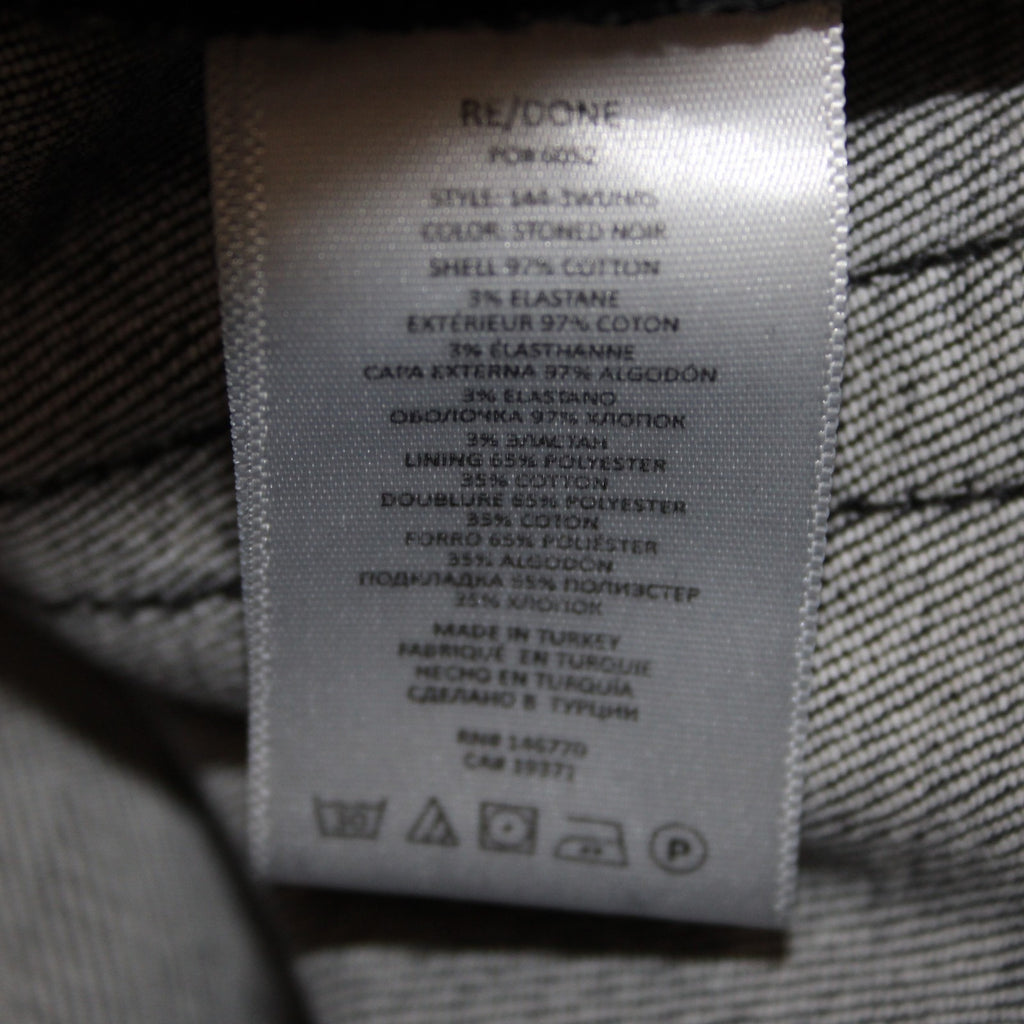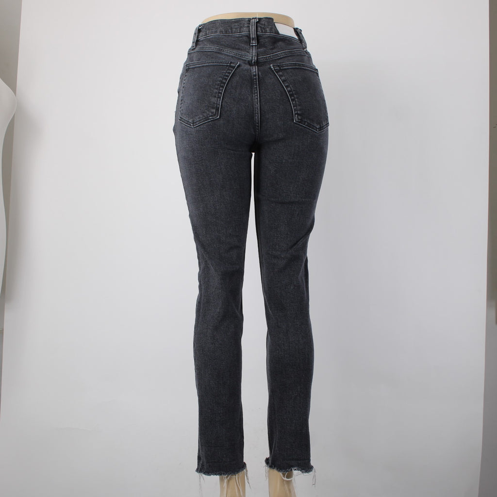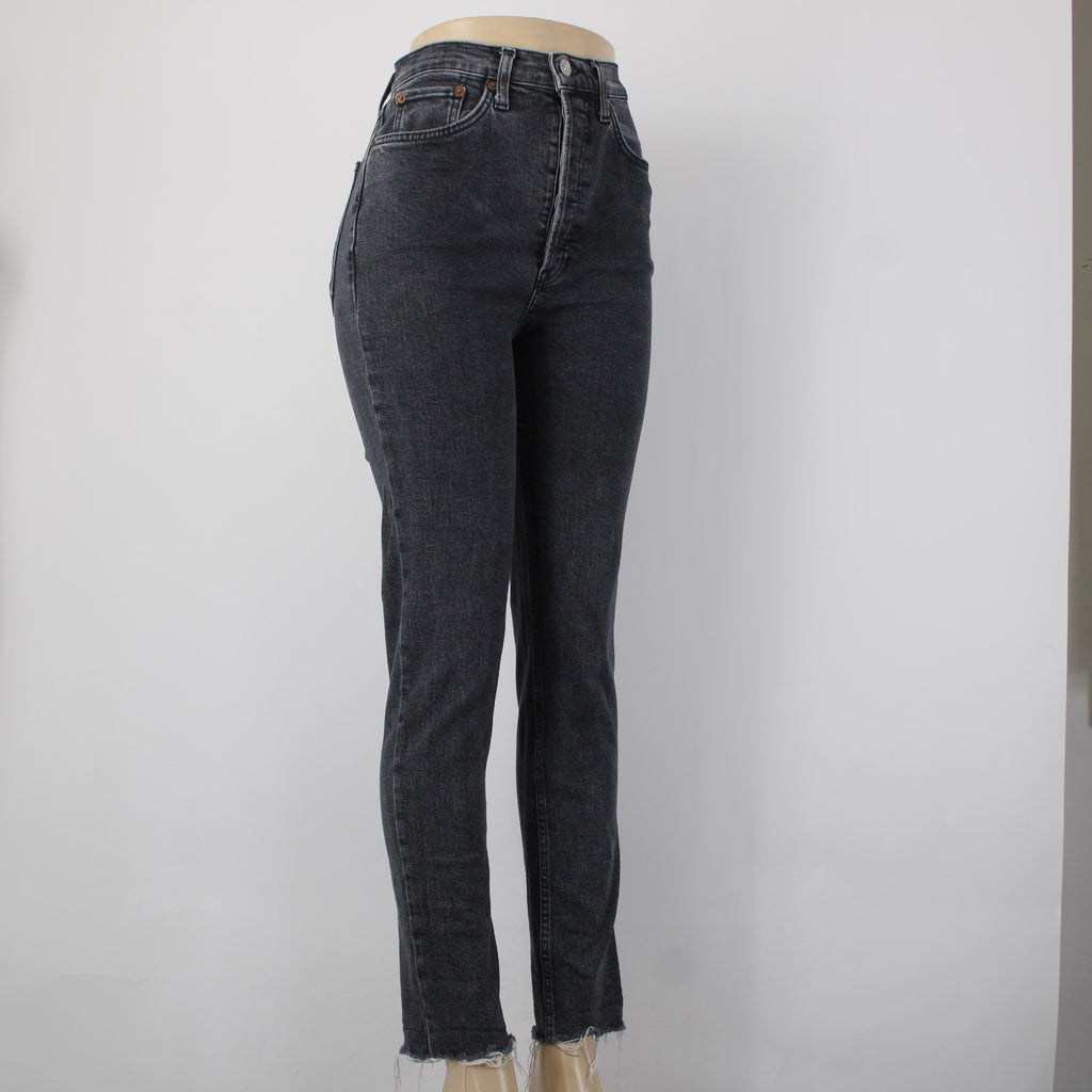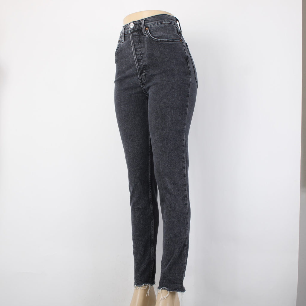 Re/Done Jeans Sz 28 x 29 Charcoal Denim Pockets Skinny Leg Raw Hem Cotton Jeans