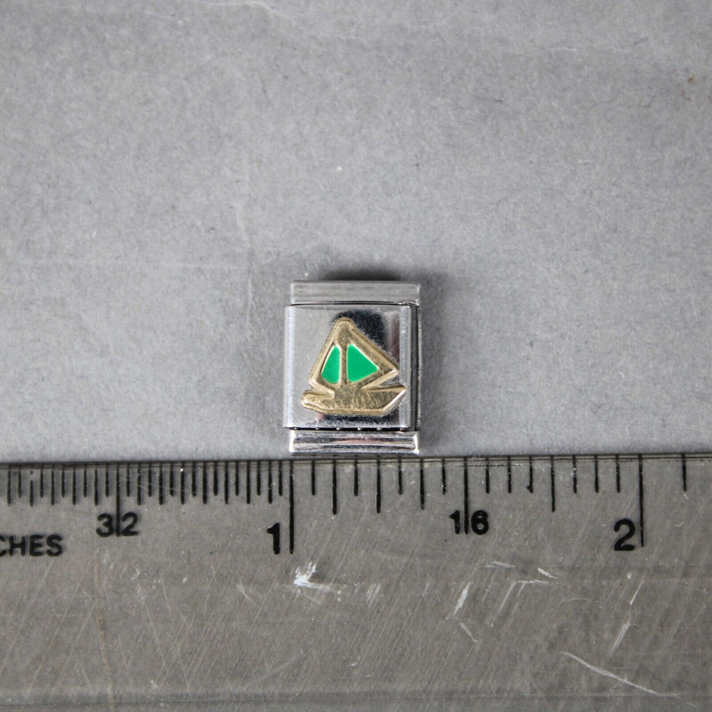 Re Florence "Sail Boat" Gold Stainless Steel Enamel Stretch Link Italian Charm