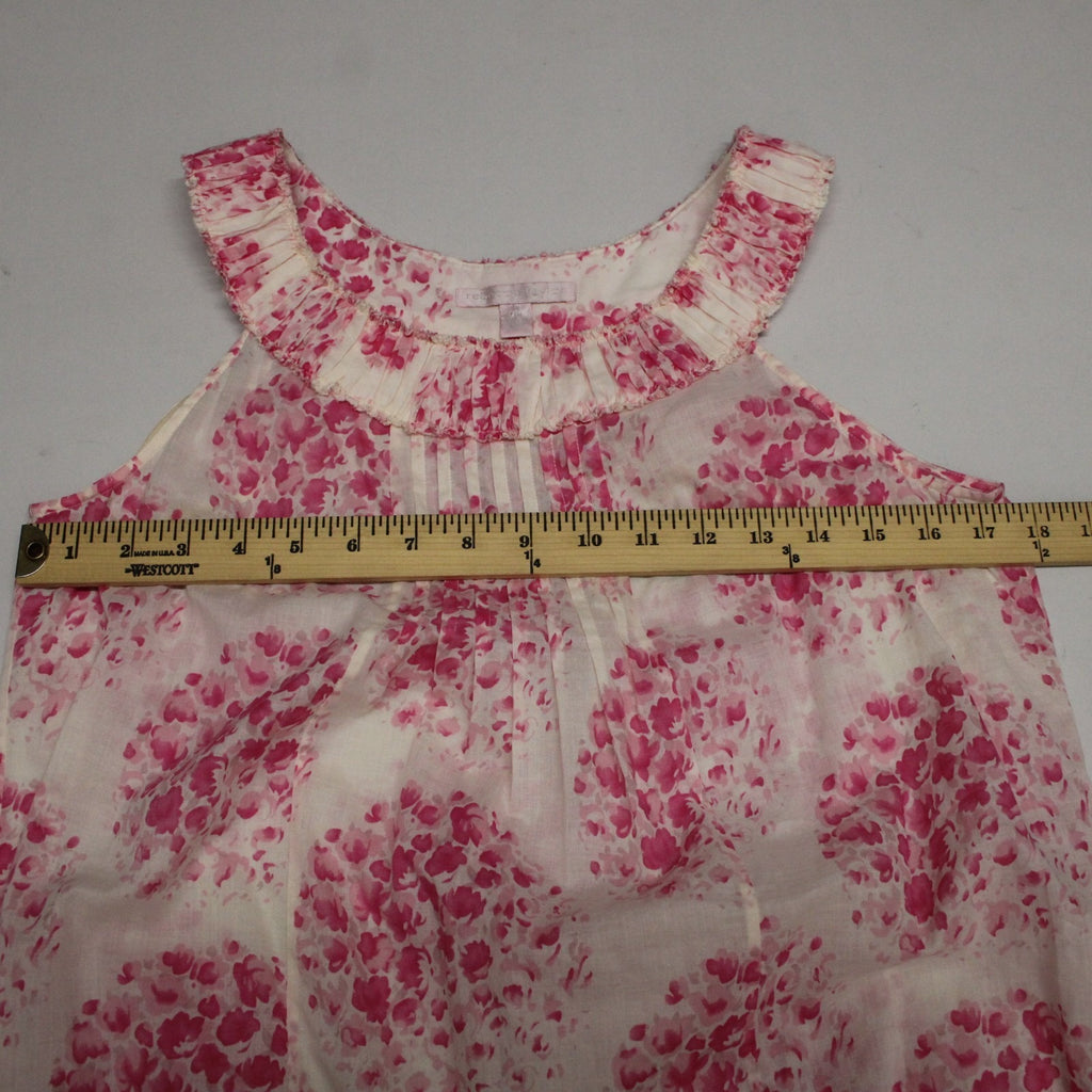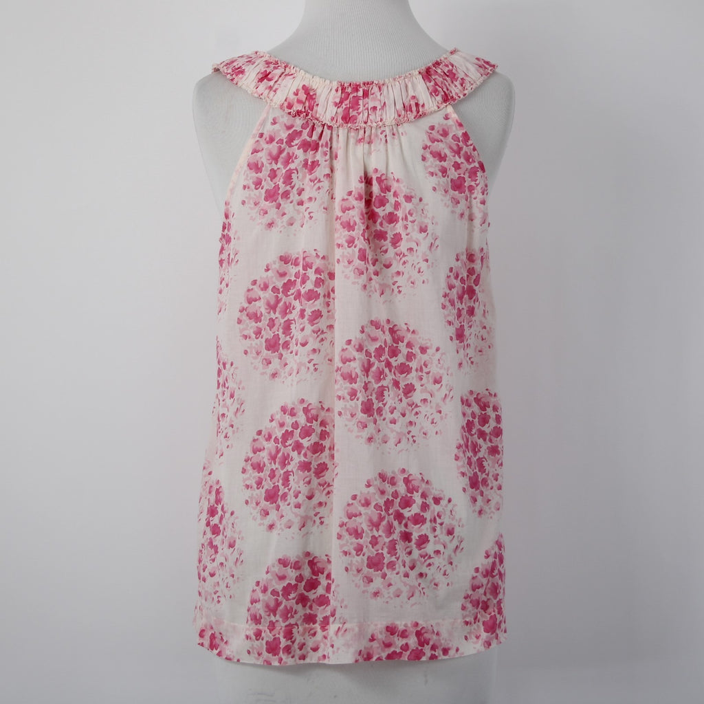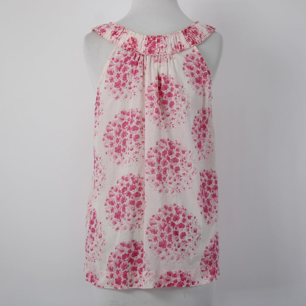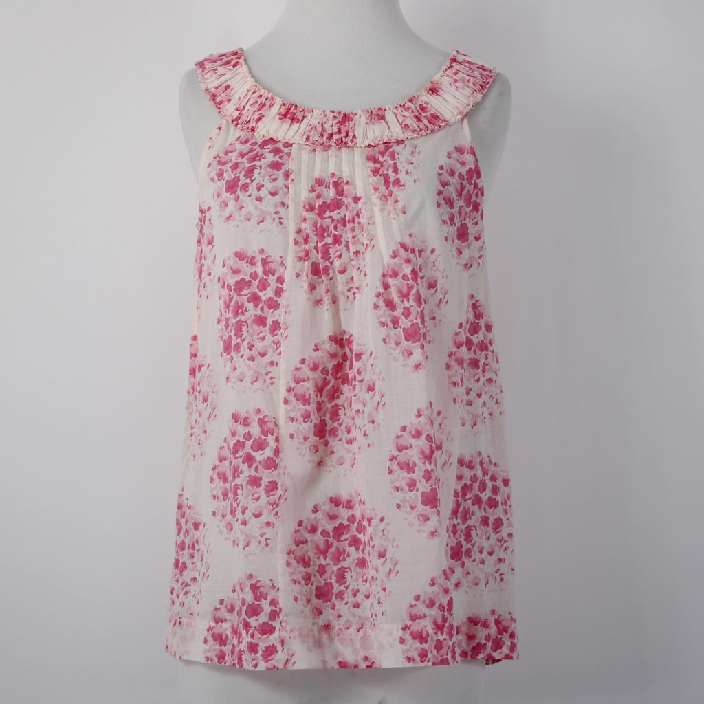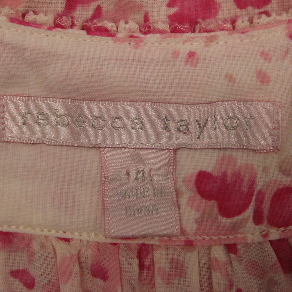 Rebecca Taylor Sz 4 Lt Pink Magenta Floral Pleated Raw Edge Collar Cotton Top
