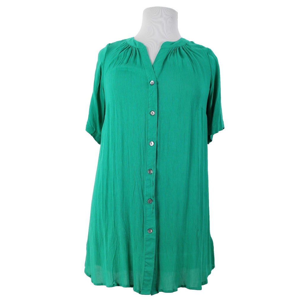 Roamans NWOT Sz 16W Green Buttons Short Sleeve 100% Rayon Top