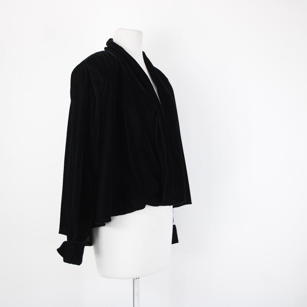 Roberta Vintage NEW $82 Sz L Black Velvet Acetate Nylon Shoulder Pad Jacket