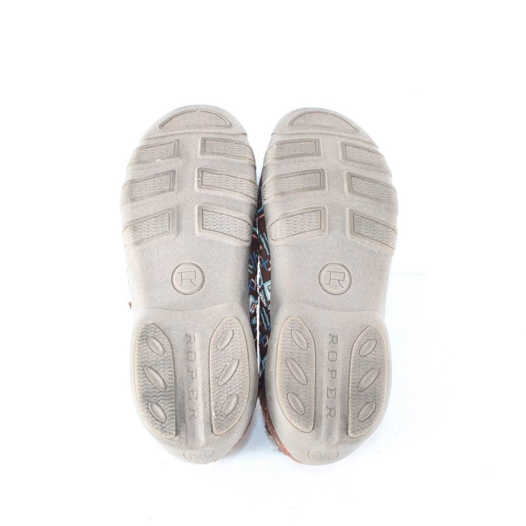 Roper Shoe NEW Sz 10 Brown Multi Color Slip On Ankle Fabric Rubber Shoe