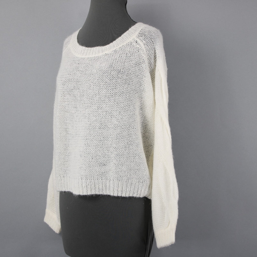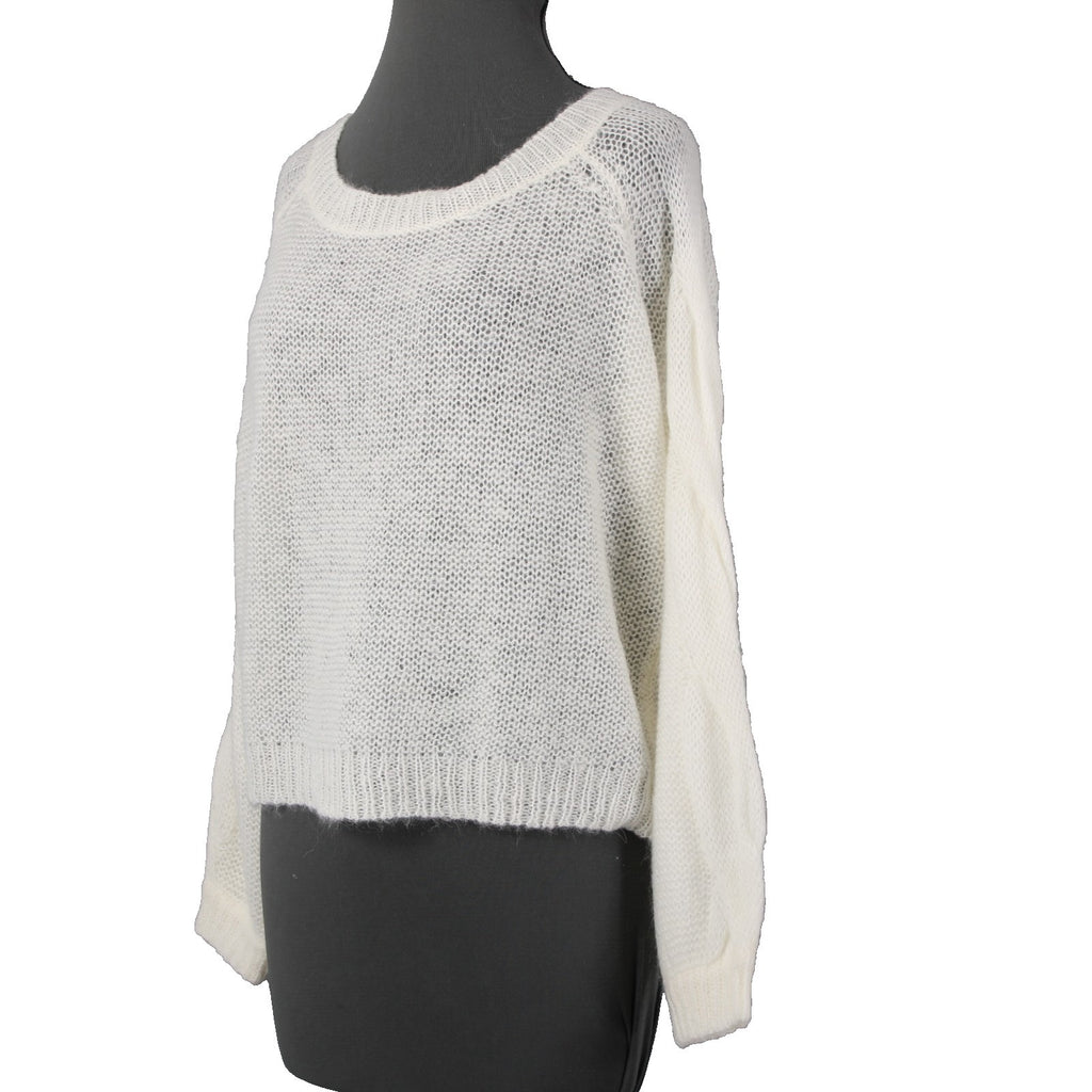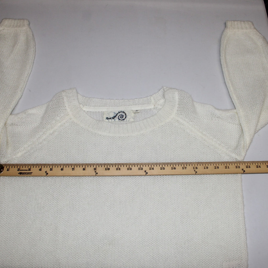 Rosie Neira Sz XS Ivory Knit Cable 3/4 Sleeve Oversize Acrylic Blend Sweater