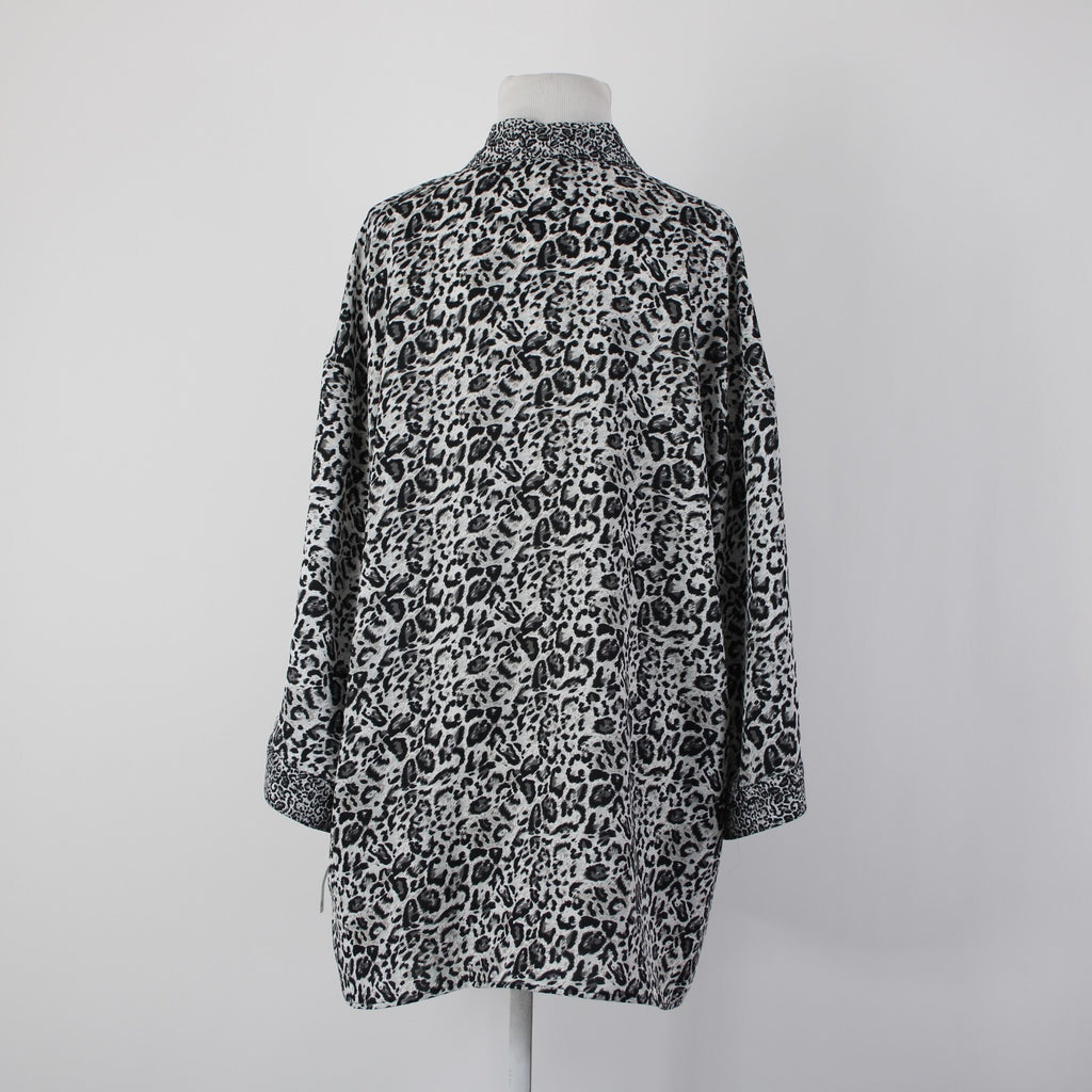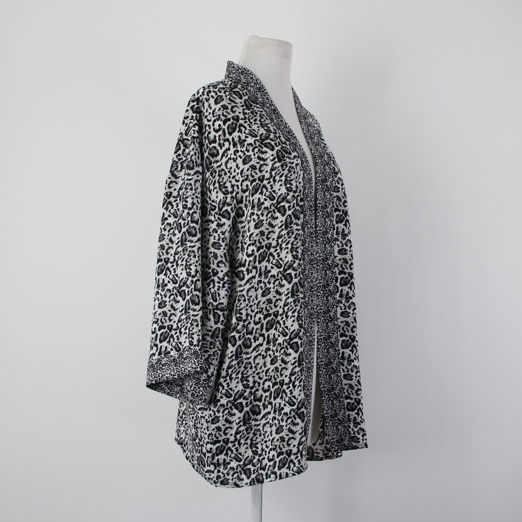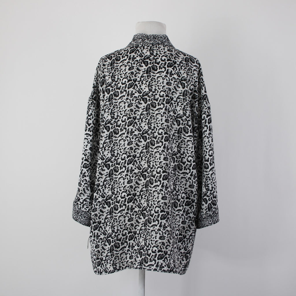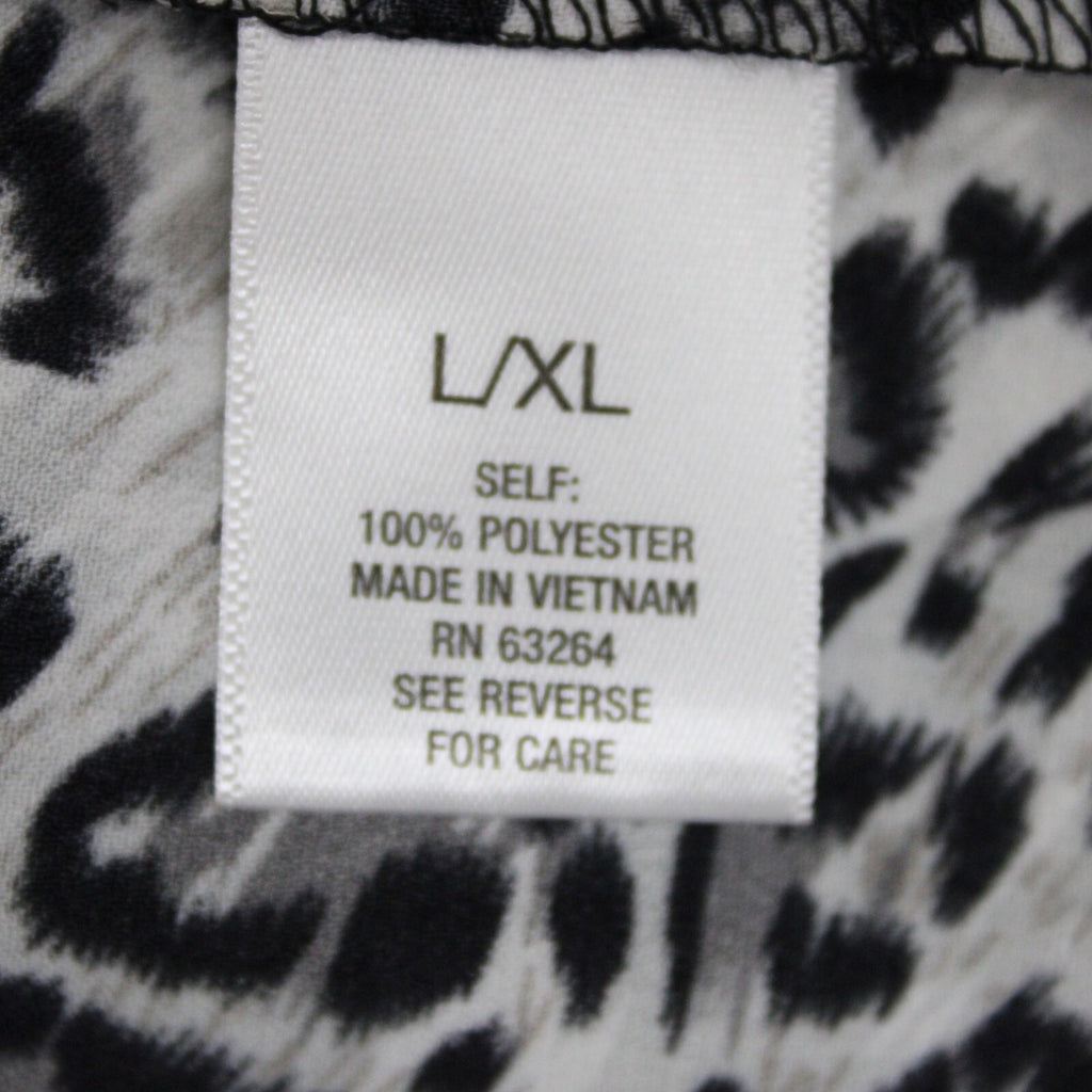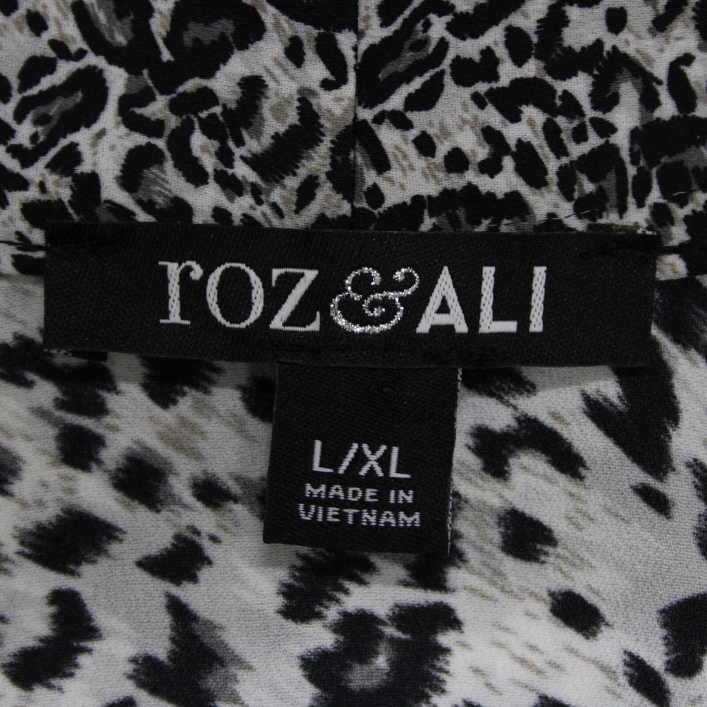 Roz Ali NEW $40 Sz L/XL Black White Gray Animal Print 100% Poly Wrap Sweater