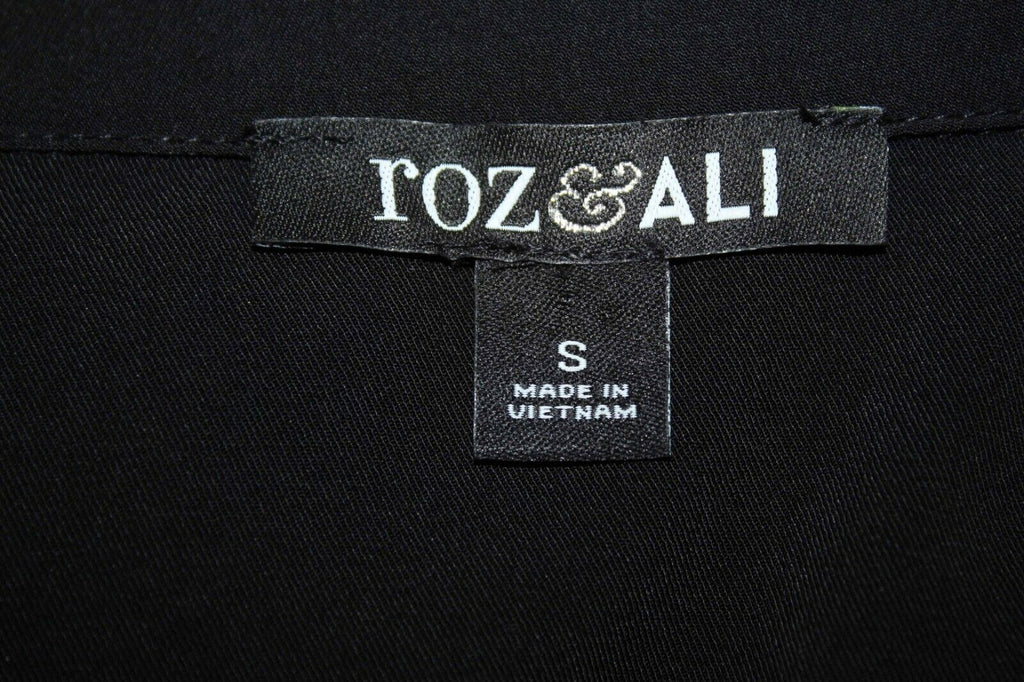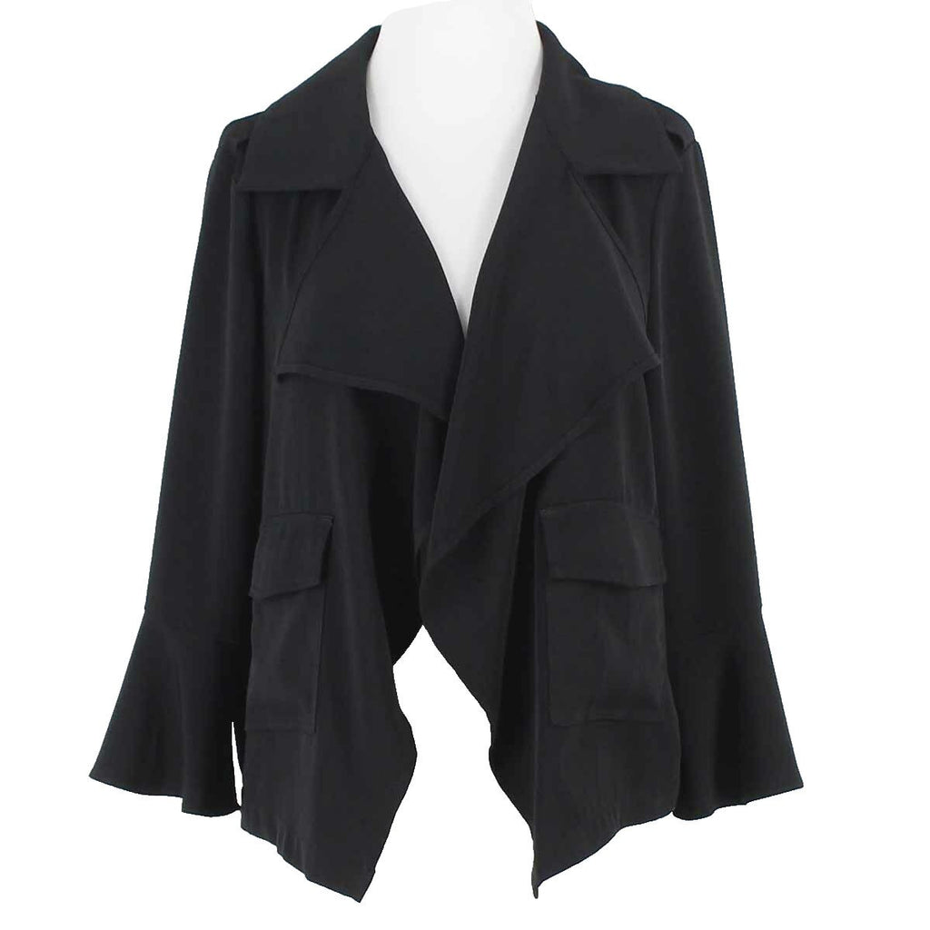 Roz & Ali NEW $50 Sz S Black Open Ruffle Detail Poly Spandex Jacket