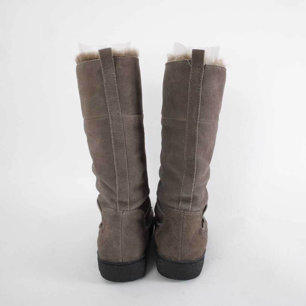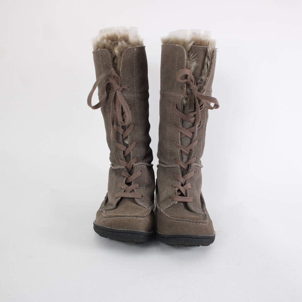 Sam Edelman Sz 9 Brown Calf High Lace Up Faux Fur Suede Upper 1" Boots