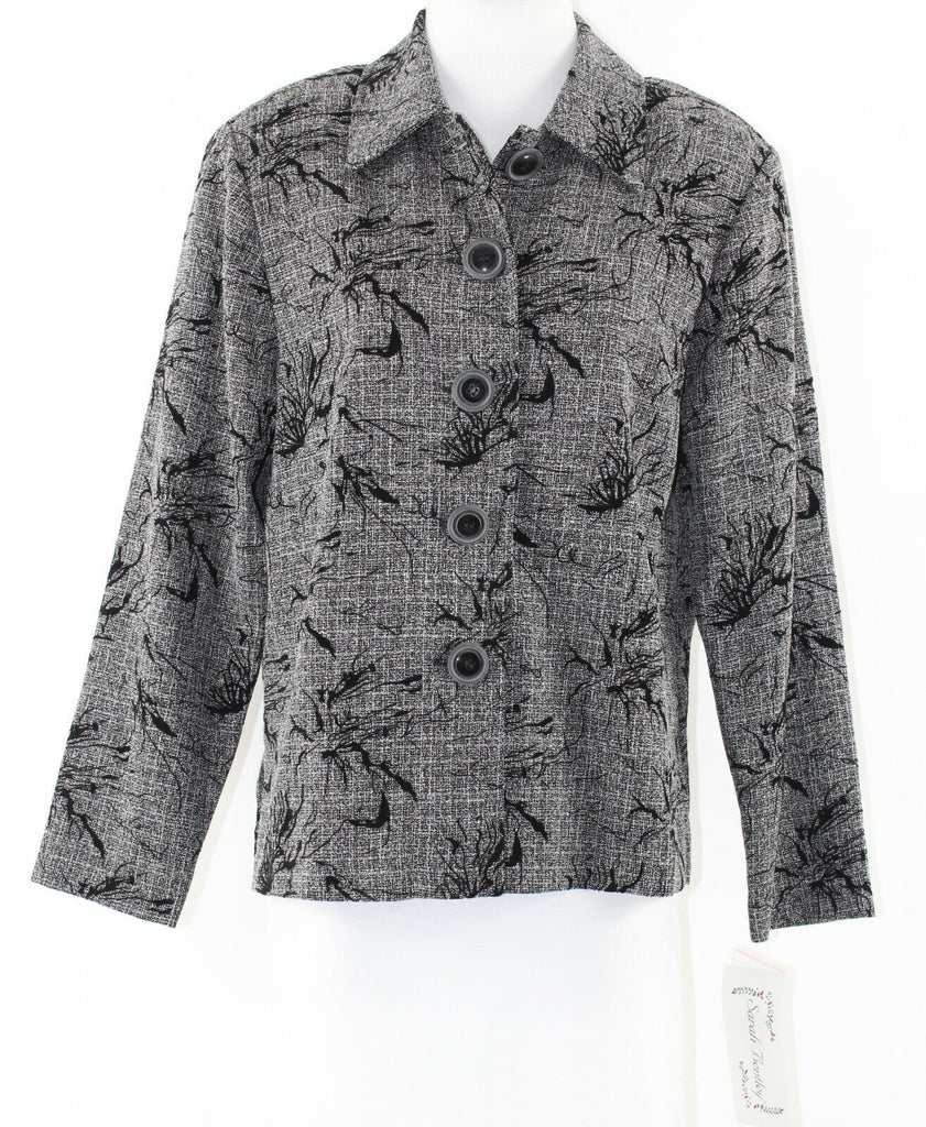 Sarah Bentley NEW $43 Sz S Charcoal Black Button Up Poly Rayon Unlined Jacket
